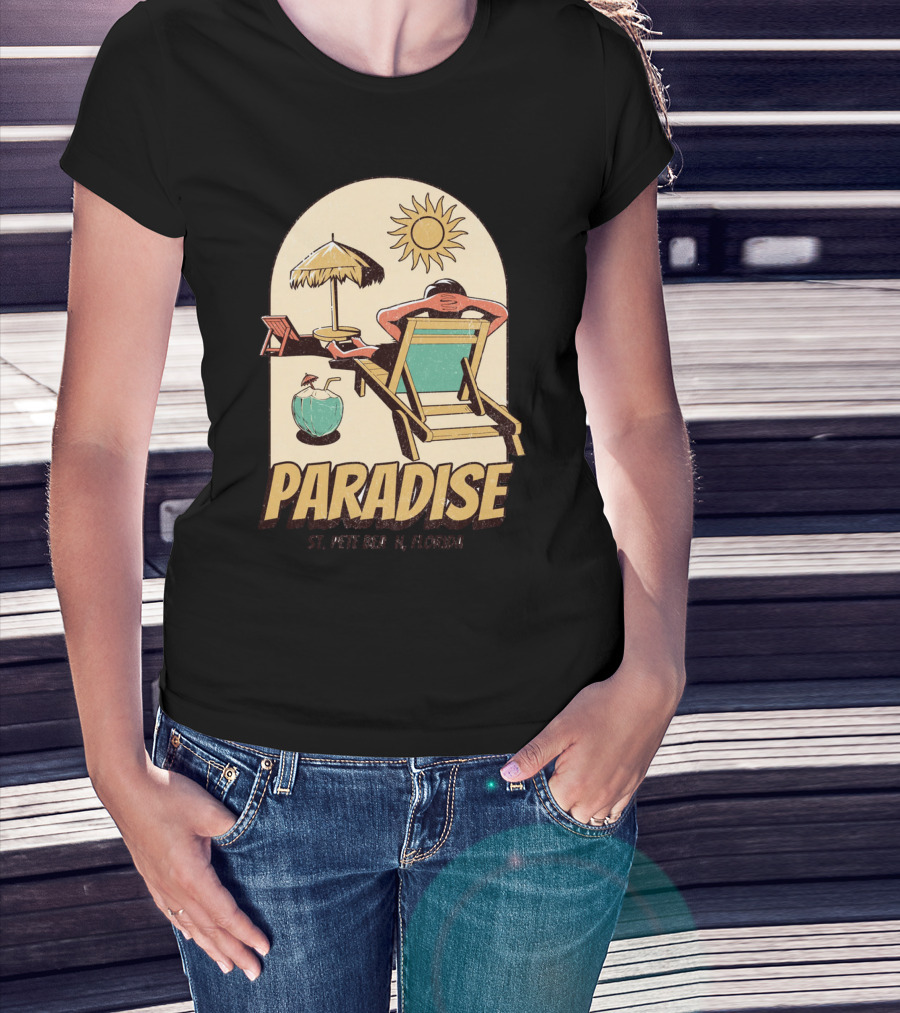 Paradise St. Pete Beach Florida Retro Sun Lounger And Cocktail Scene T-Shirt