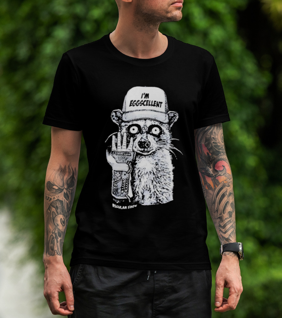 I'm Eggscellent Rigby Regular Show Raccoon Wearing Hat With Cybernetic Arm T-Shirt