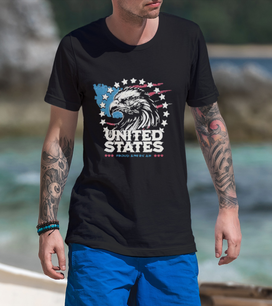 The United States Proud American Eagle T-shirt is designed for everyday wear and a consistent fit. Fabric is pre-shrunk ring-spun cotton with durable stitching. See the size chart below for exact measurements.