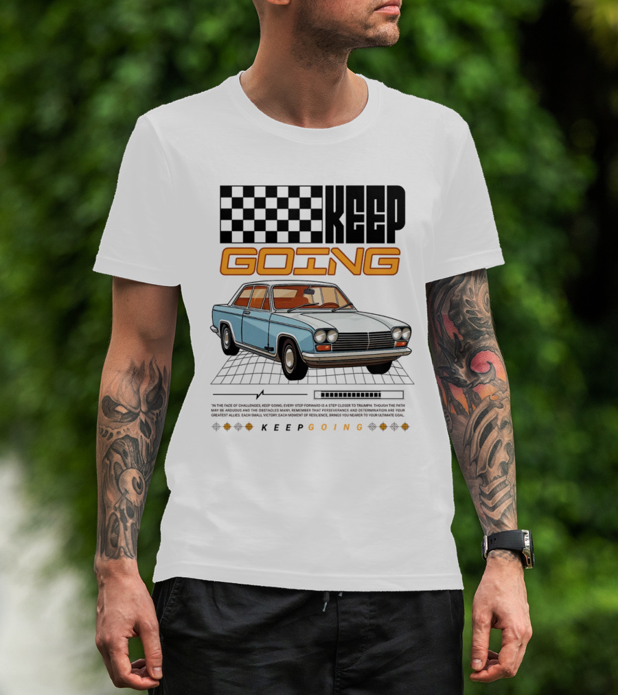 KEEP GOING Retro Car Classic Style Checkerboard Racing Elements T-Shirt