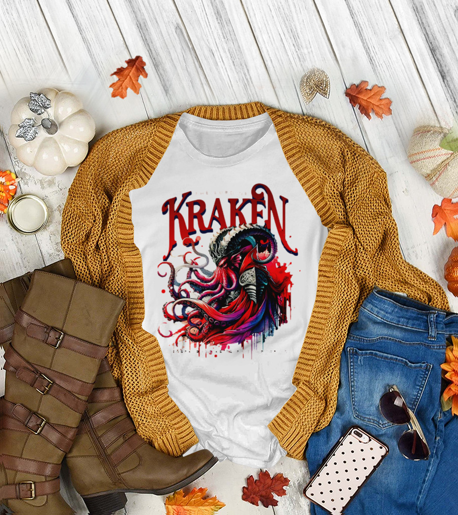 The The Lord of Kraken Embrace the Abyss Rule the Depths T-shirt is designed for everyday wear and a consistent fit. Fabric is pre-shrunk ring-spun cotton with durable stitching. See the size chart below for exact measurements.