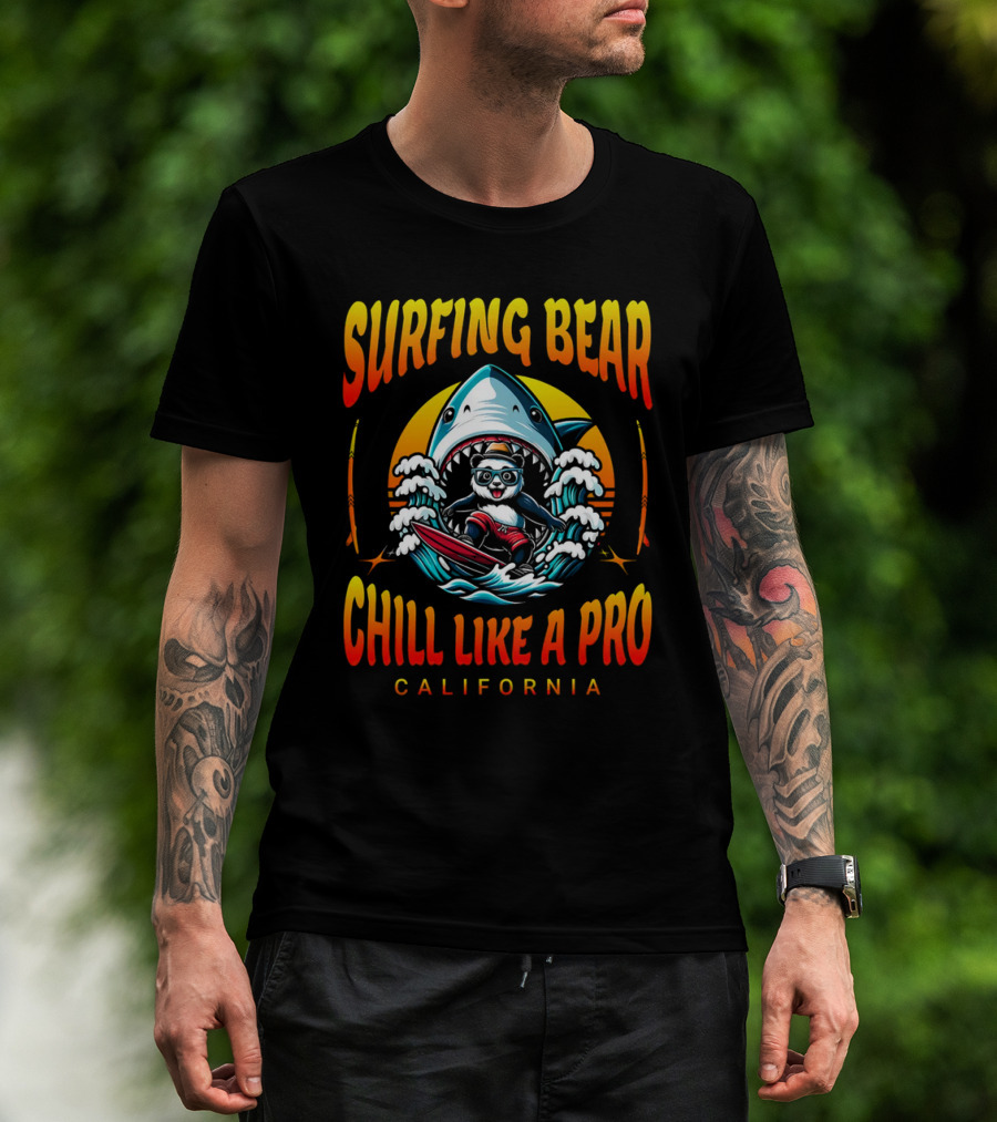 Surfing Bear Chill Like A Pro California Shark Waves Adventure T-Shirt