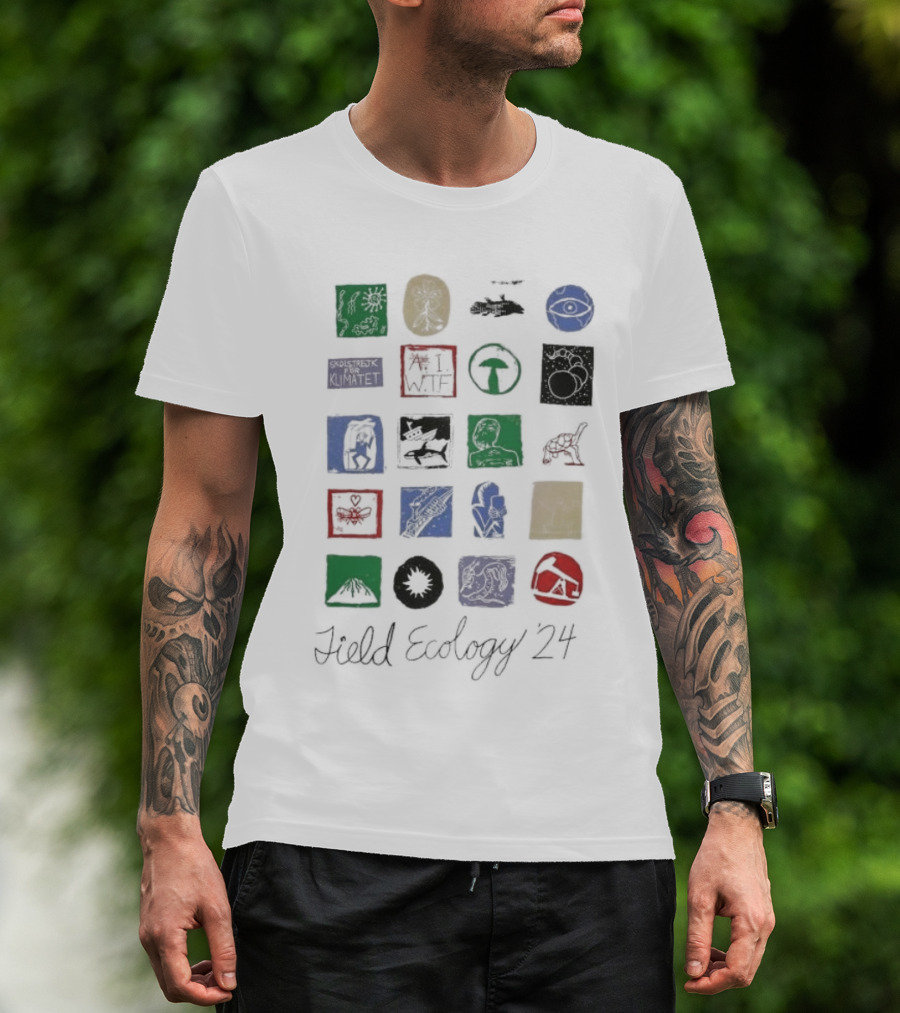 The Fieldecology 24 Field Ecology Eye Mushroom Whale Hammerhead Bat Tree Planet Arrow Head T-shirt is designed for everyday wear and a consistent fit. Fabric is pre-shrunk ring-spun cotton with durable stitching. See the size chart below for exact measurements.