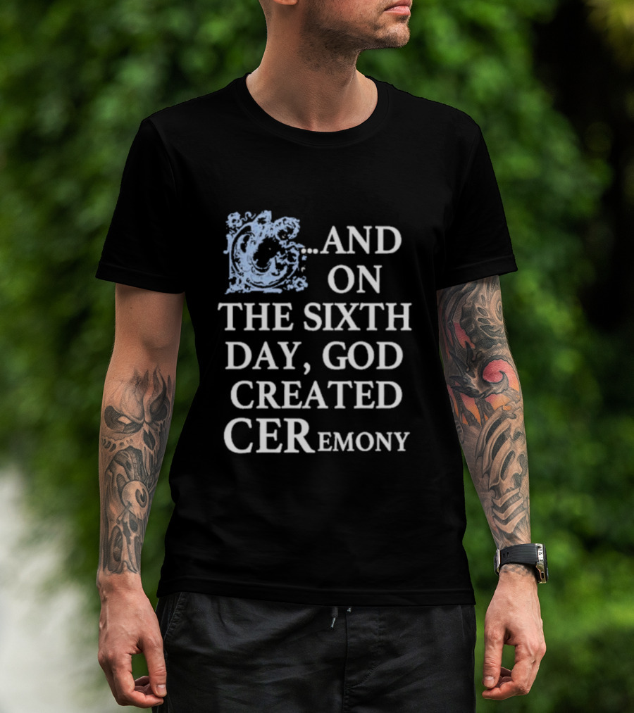 The And On The Sixth Day God Created Ceremony T-shirt is designed for everyday wear and a consistent fit. Fabric is pre-shrunk ring-spun cotton with durable stitching. See the size chart below for exact measurements.