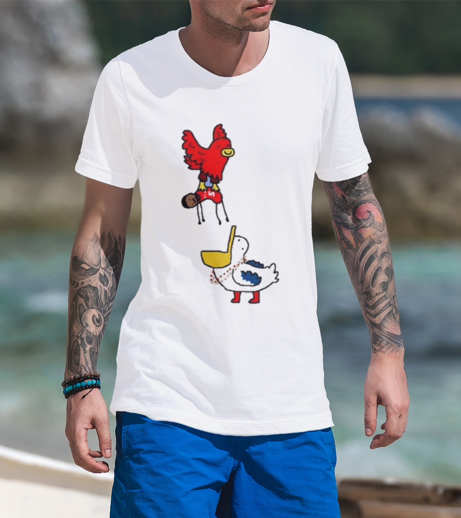 The Atlanta Hawks Trade Dejounte Murray Featuring Cartoon Red Hawk Flying Over Pelican T-shirt is designed for everyday wear and a consistent fit. Fabric is pre-shrunk ring-spun cotton with durable stitching. See the size chart below for exact measurements.