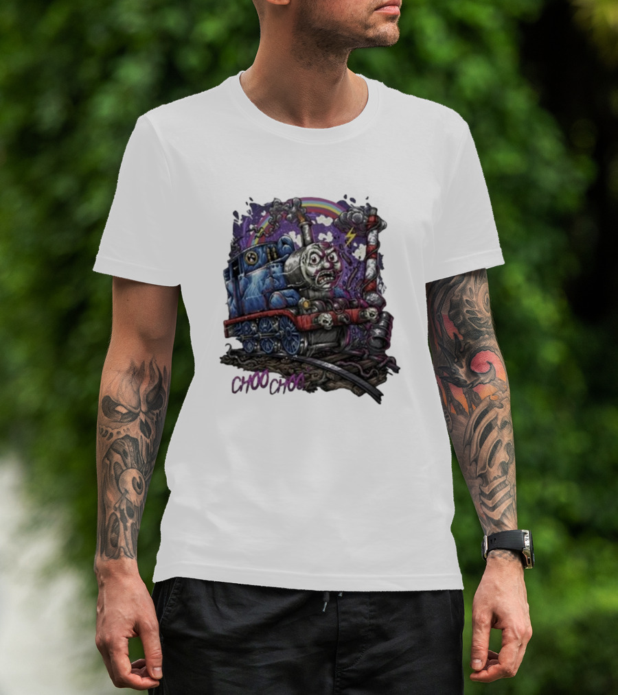 The Damaged Society Choo Choo Train Madness T-shirt is designed for everyday wear and a consistent fit. Fabric is pre-shrunk ring-spun cotton with durable stitching. See the size chart below for exact measurements.