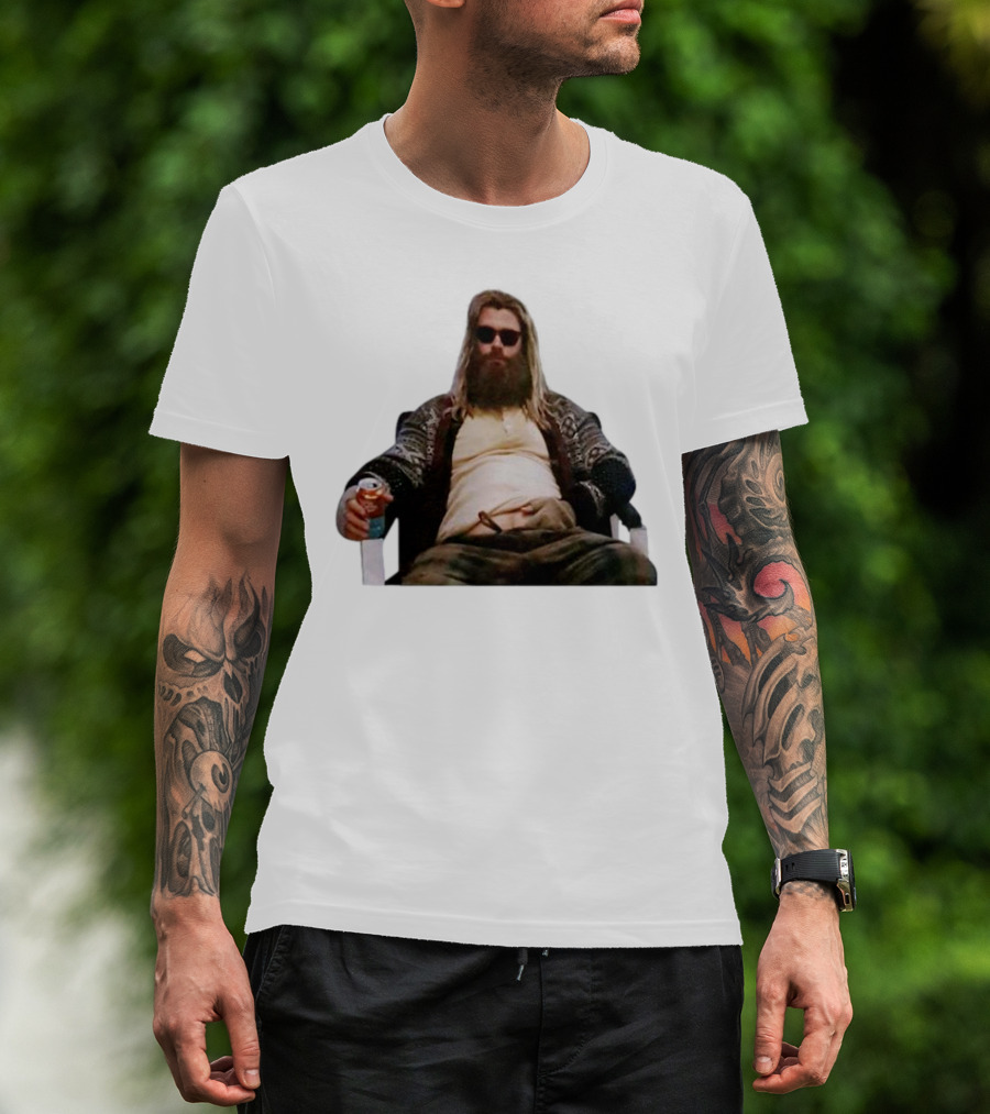 Marvel Avengers Endgame Fat Thor Sitting Relaxed With Drink T-Shirt