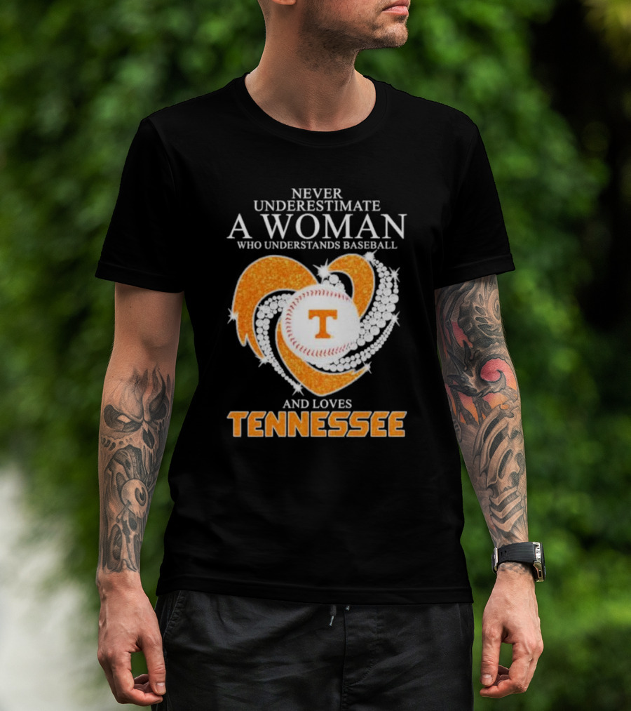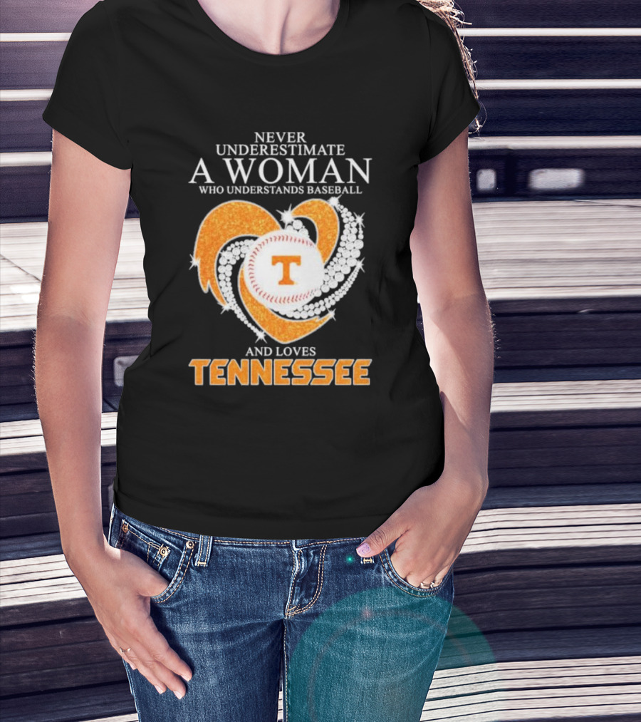 Never Underestimate A Woman Who Understands Baseball And Loves Tennessee Vols Heart Diamond T-Shirt
