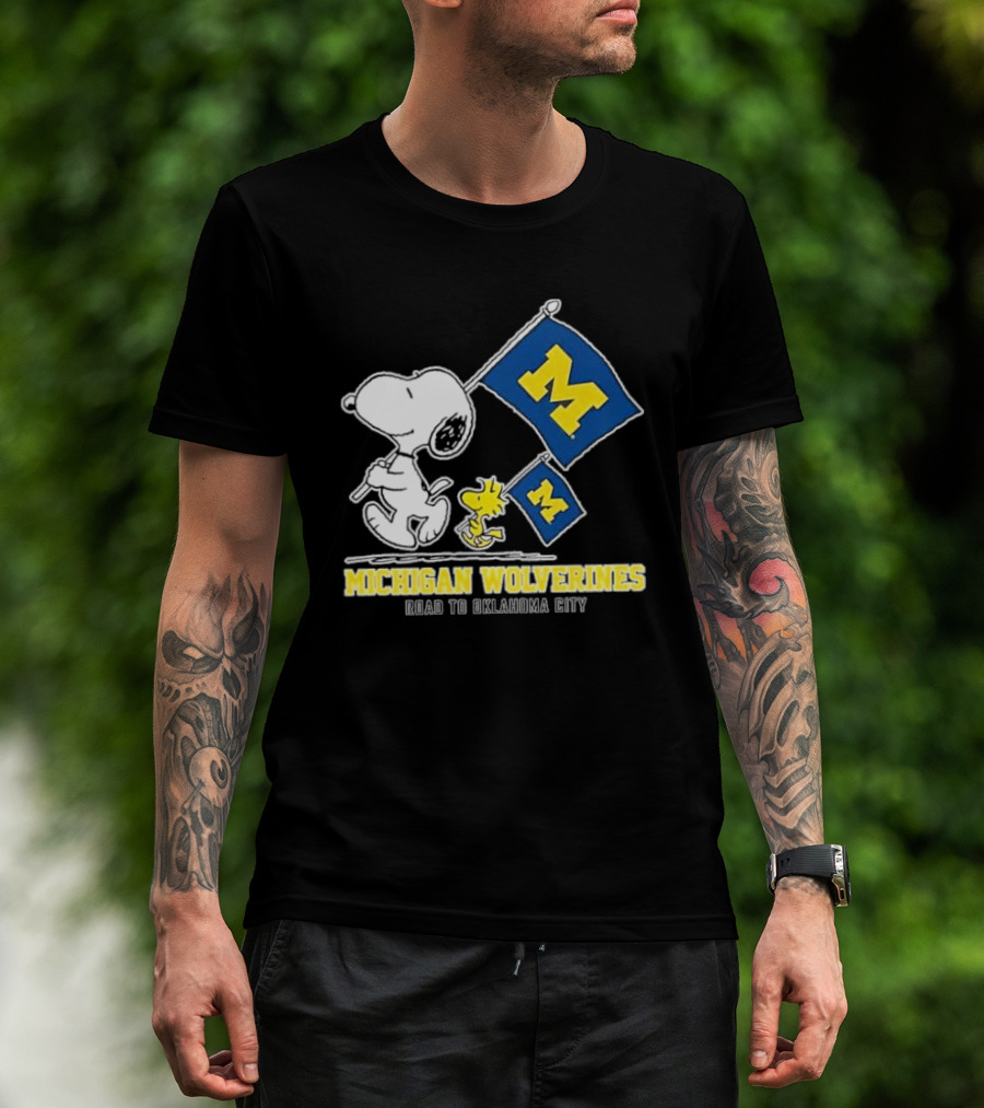 Snoopy And Woodstock Michigan Wolverines Flags Road To Oklahoma City T-Shirt
