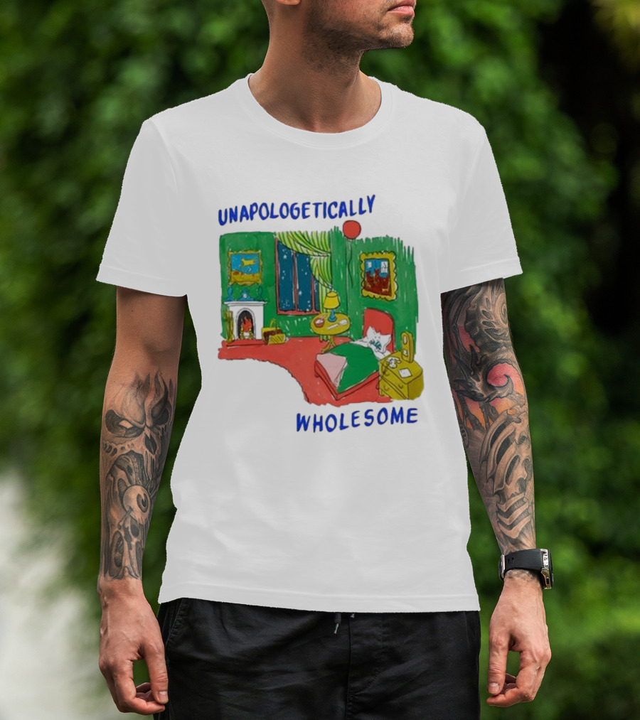 The Unapologetically Wholesome Cozy Bedroom Scene T-shirt is designed for everyday wear and a consistent fit. Fabric is pre-shrunk ring-spun cotton with durable stitching. See the size chart below for exact measurements.