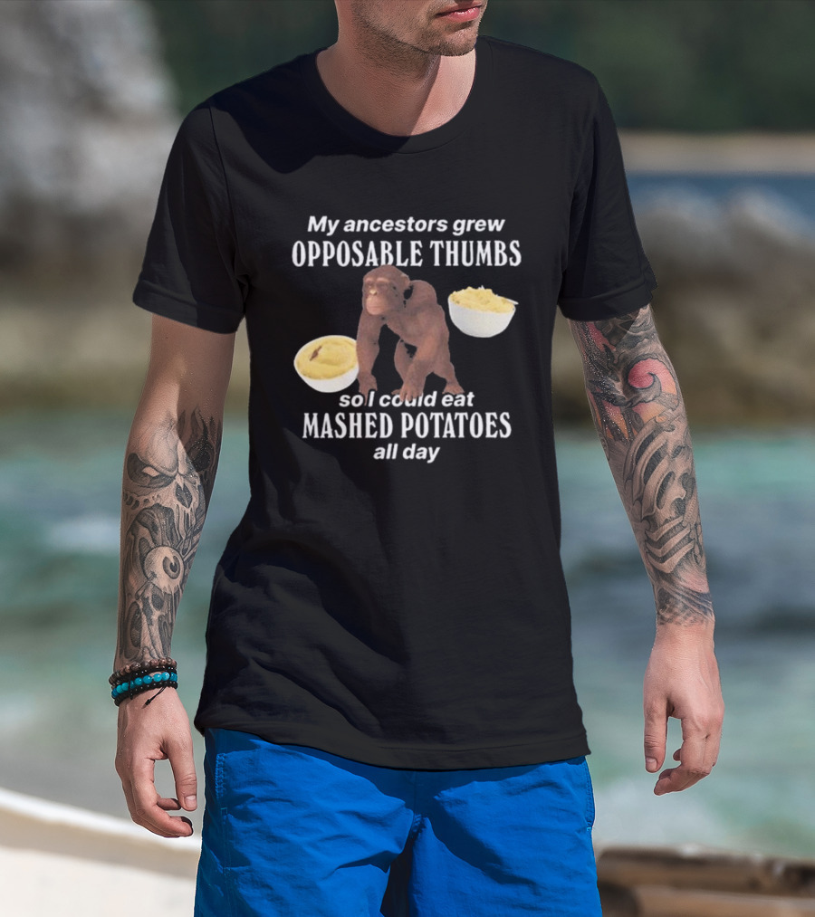 My Ancestors Grew Opposable Thumbs So I Could Eat Mashed Potatoes All Day Monkey Bowls T-Shirt