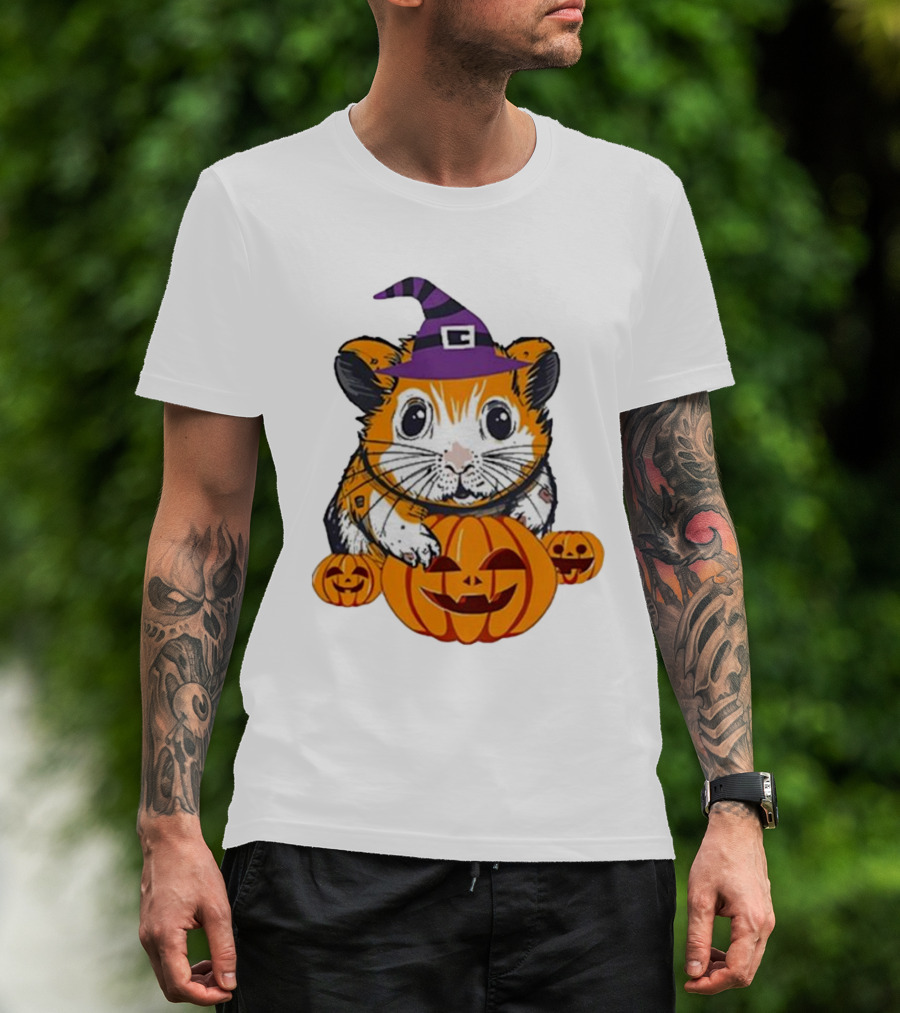 Halloween Guinea Pig With Witch Hat And Pumpkins T-Shirt