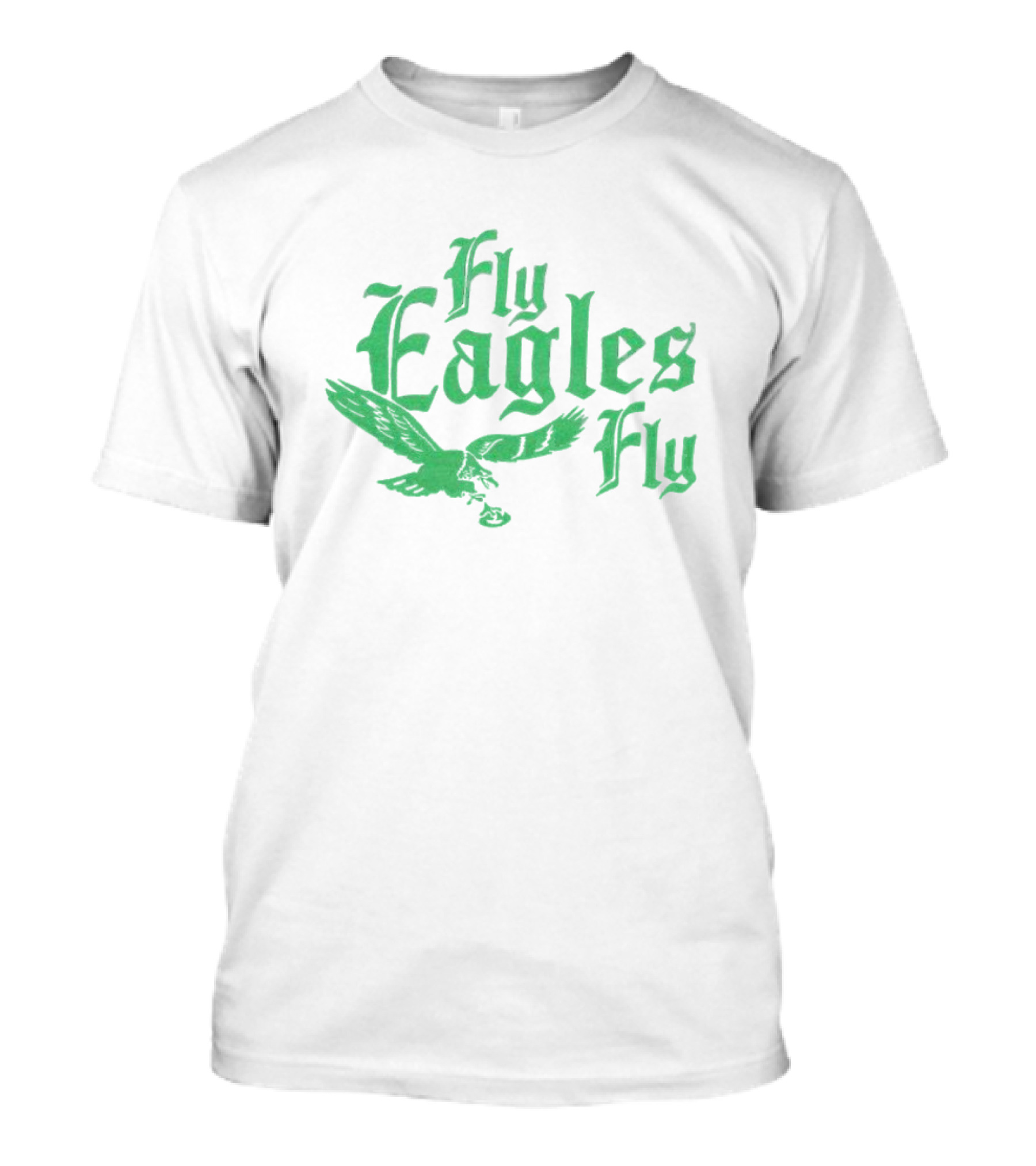 The Philadelphia Eagles Fly Eagles Fly T-shirt is designed for everyday wear and a consistent fit. Fabric is pre-shrunk ring-spun cotton with durable stitching. See the size chart below for exact measurements.