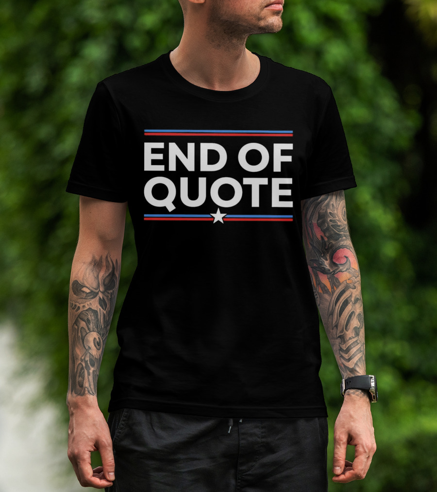 The END OF QUOTE Patriotic Star and Stripes T-shirt is designed for everyday wear and a consistent fit. Fabric is pre-shrunk ring-spun cotton with durable stitching. See the size chart below for exact measurements.