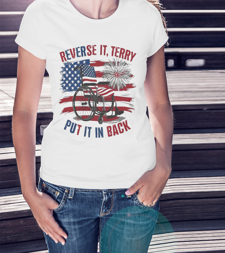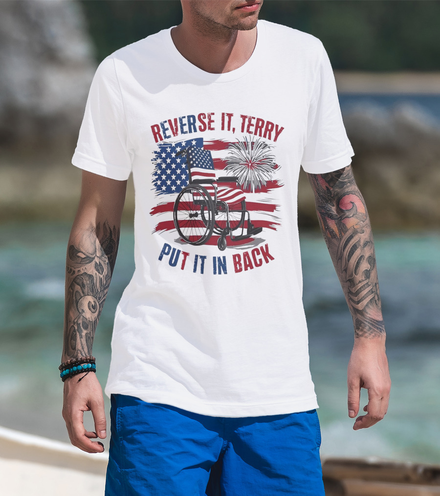 Reverse It Terry Put It In Back USA Flag Fireworks Wheelchair T-Shirt