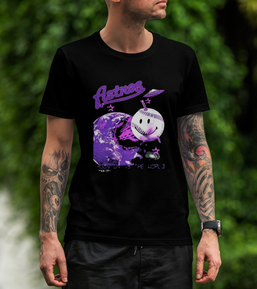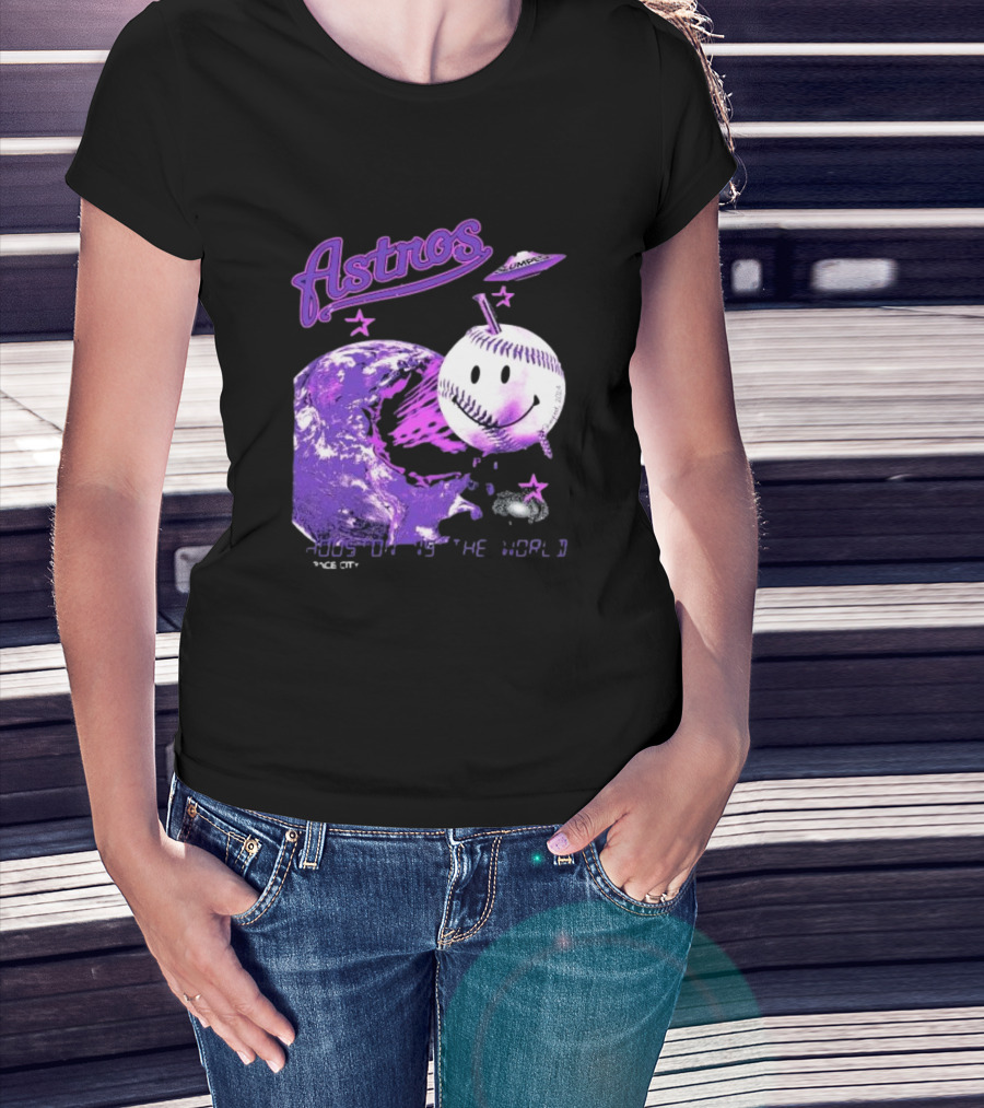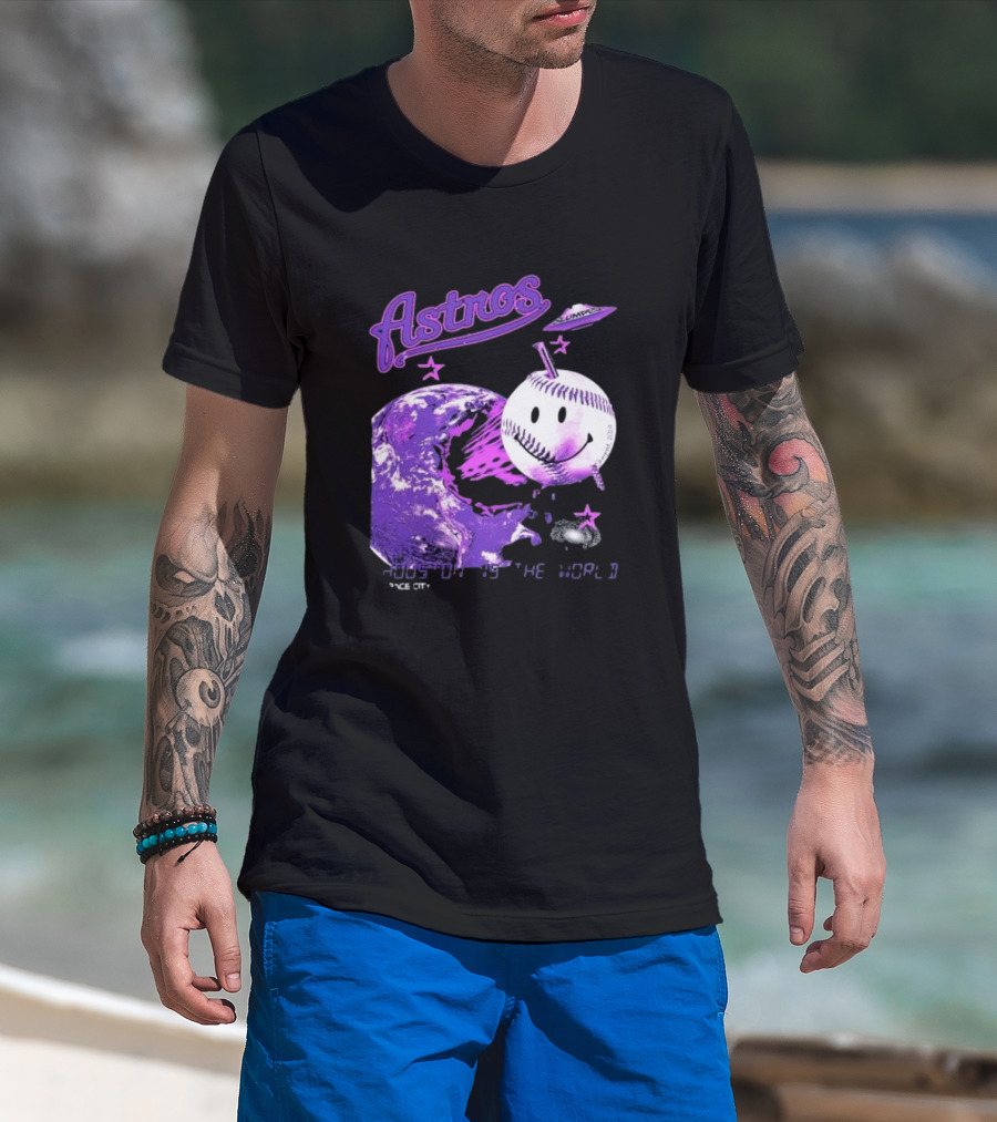 The Astros Houston Cosmic Baseball World Space City Iconic Smiley Planetary Galaxy T-shirt is designed for everyday wear and a consistent fit. Fabric is pre-shrunk ring-spun cotton with durable stitching. See the size chart below for exact measurements.