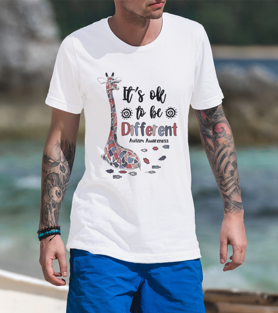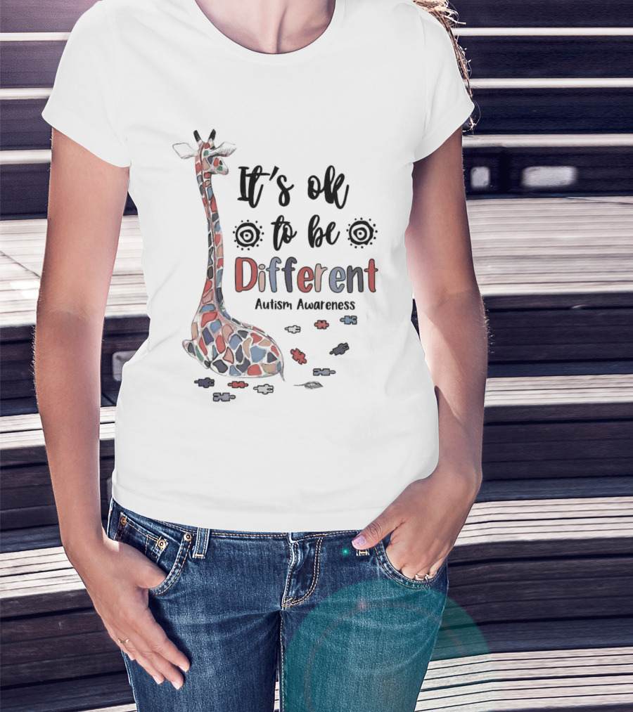 It's Ok To Be Different Giraffe Autism Awareness T-Shirt