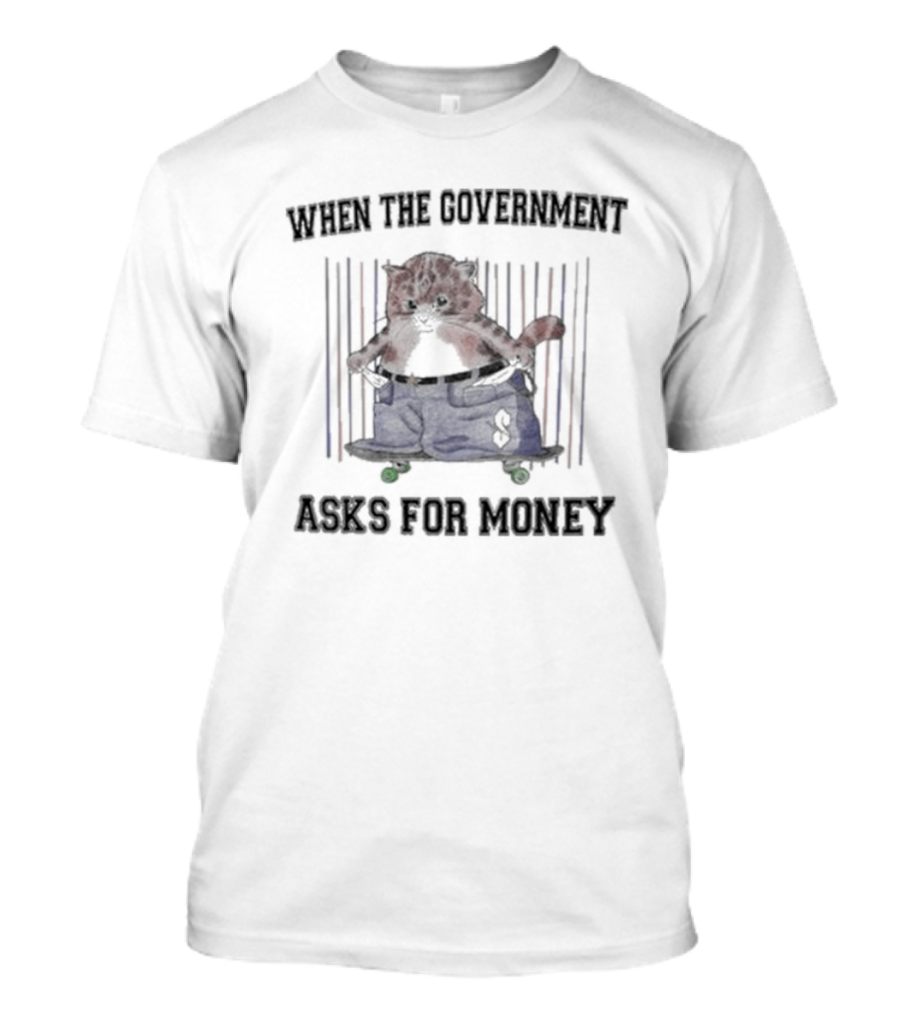 When The Government Asks For Money Cat With Oversized Pants On Skateboard T-Shirt