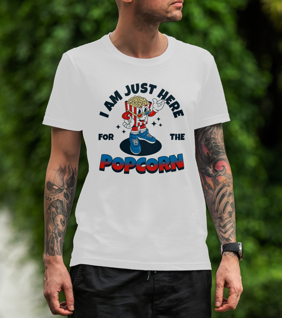 I Am Just Here For The Popcorn Retro Mascot T-Shirt