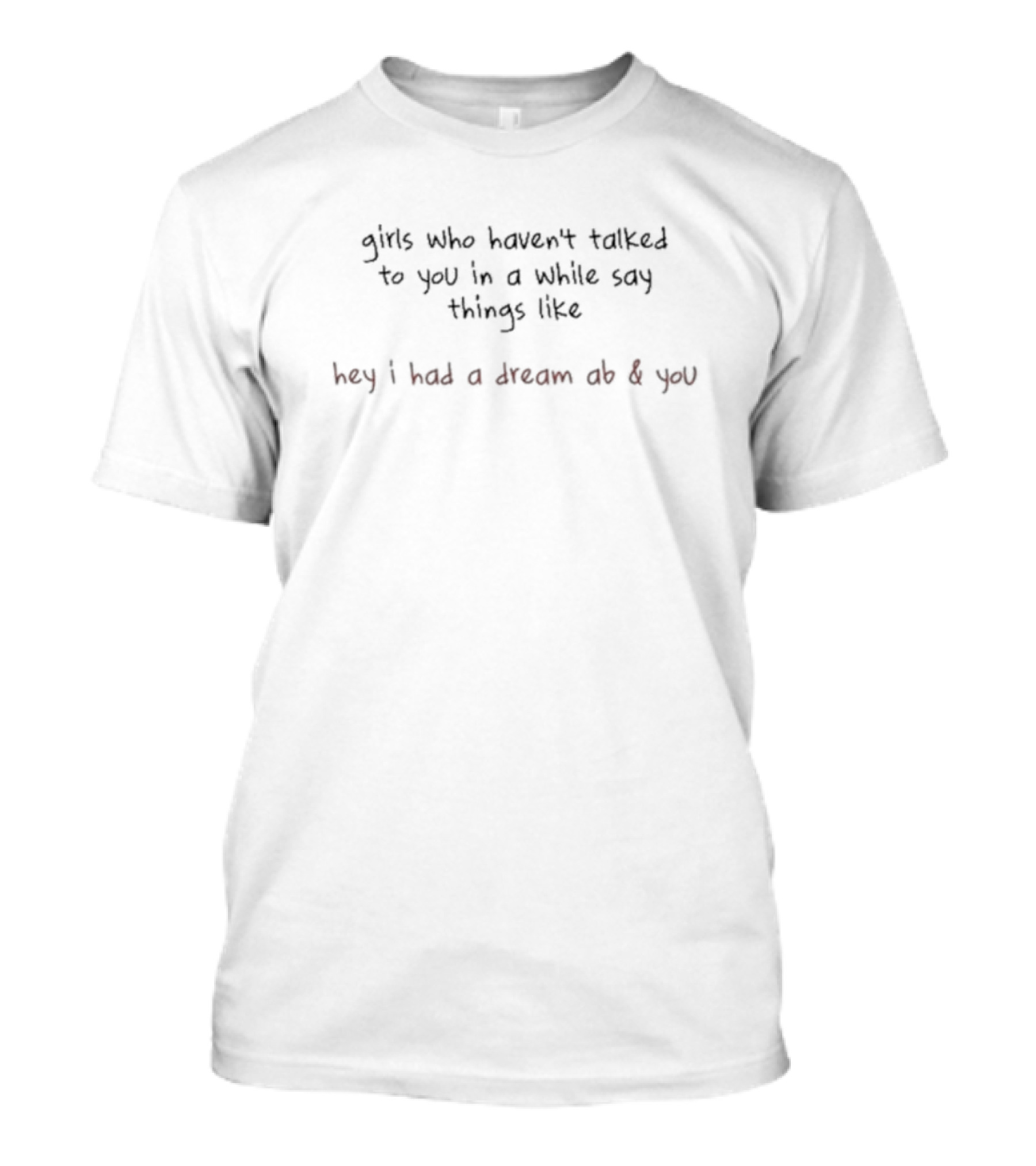 The Cj Stroud Wearing Don't Respond Girls Who Haven't Talked Hey I Had a Dream Ab and You T-shirt is designed for everyday wear and a consistent fit. Fabric is pre-shrunk ring-spun cotton with durable stitching. See the size chart below for exact measurements.