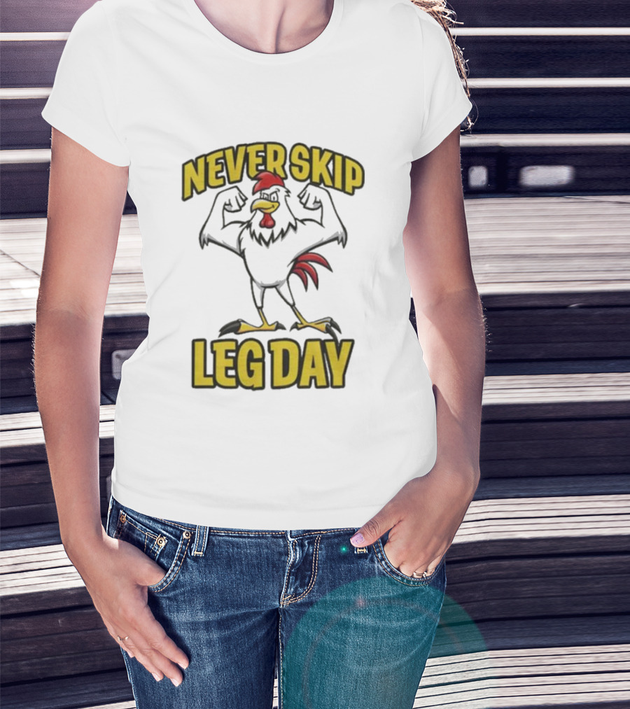 Never Skip Leg Day Strong Rooster Fitness Motivation Joke T-Shirt