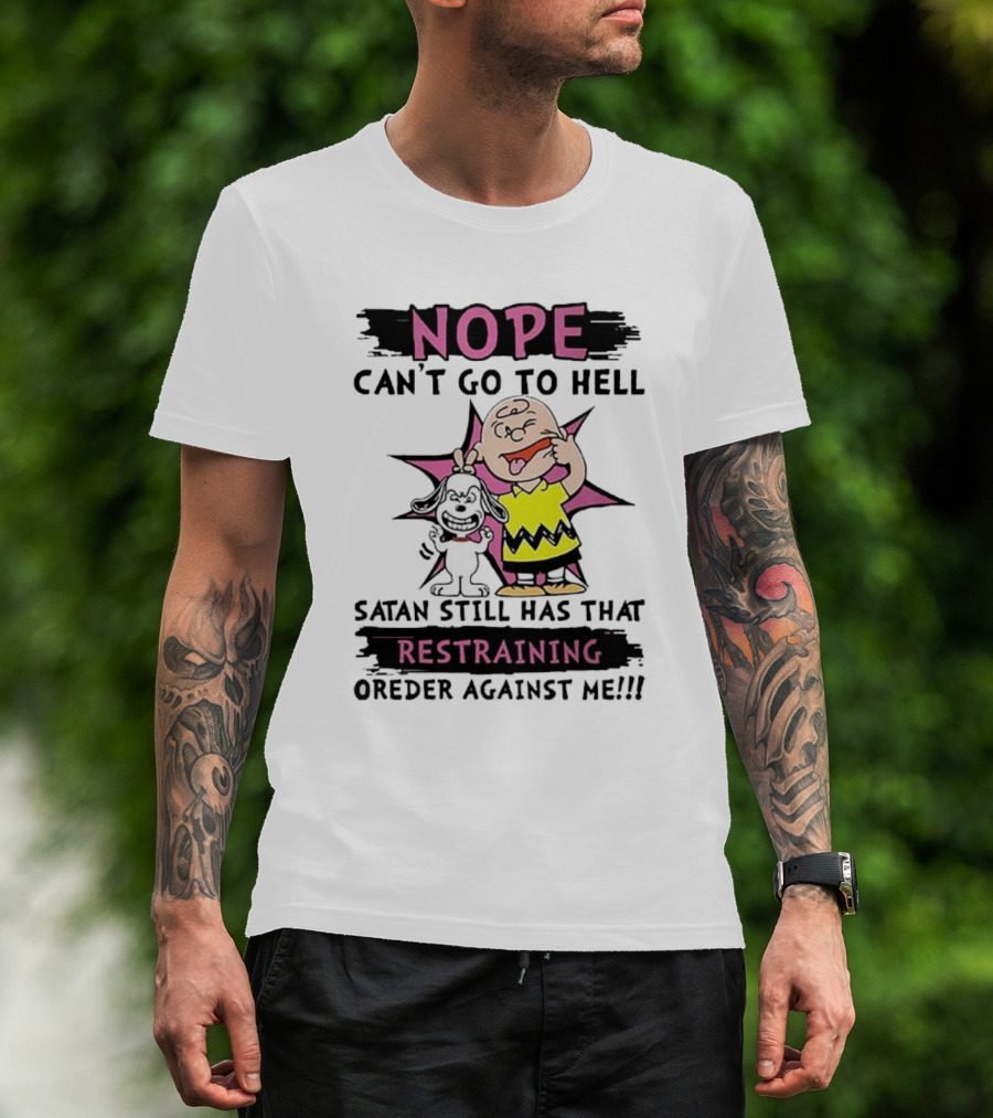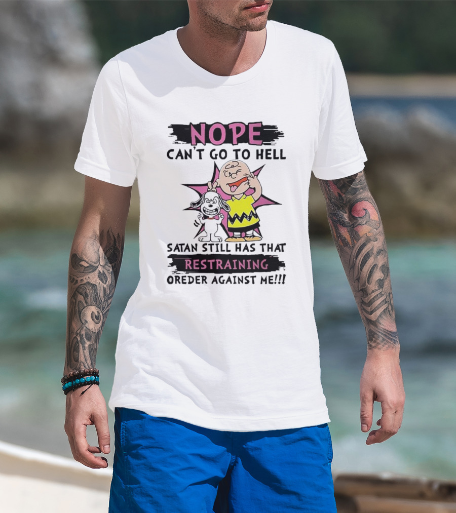 Nope Can't Go To Hell Satan Still Has That Restraining Order Against Me Charlie Brown Snoopy T-Shirt