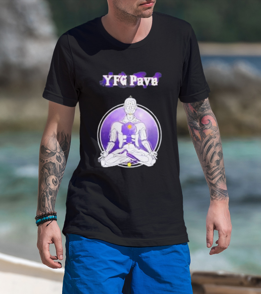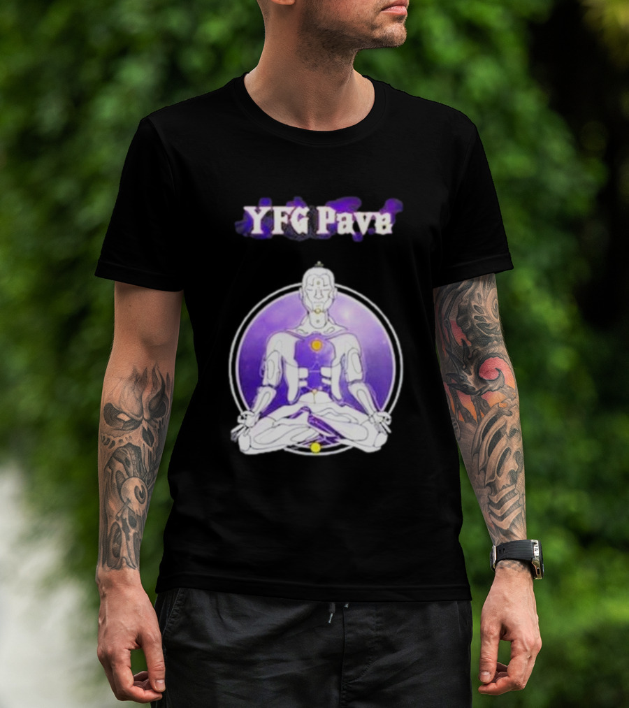 YFG Pave 444 Meditating Robotic Figure Purple Mandala T-Shirt