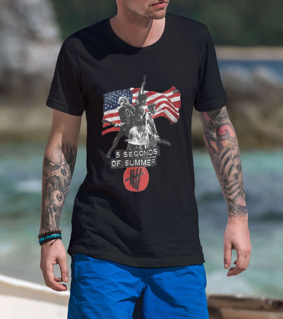 5 Seconds Of Summer American Band With Flag And Tally T-Shirt