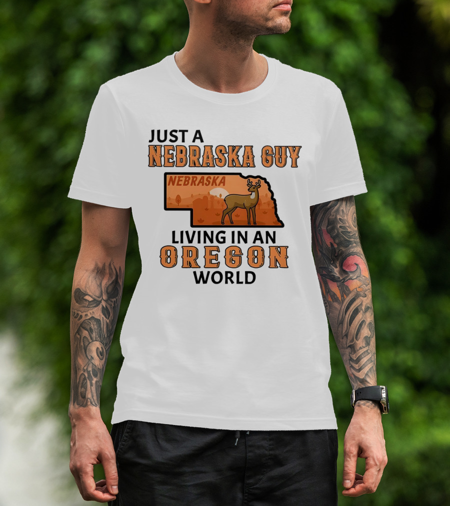 Just A Nebraska Guy Nebraska Living In An Oregon World T-Shirt