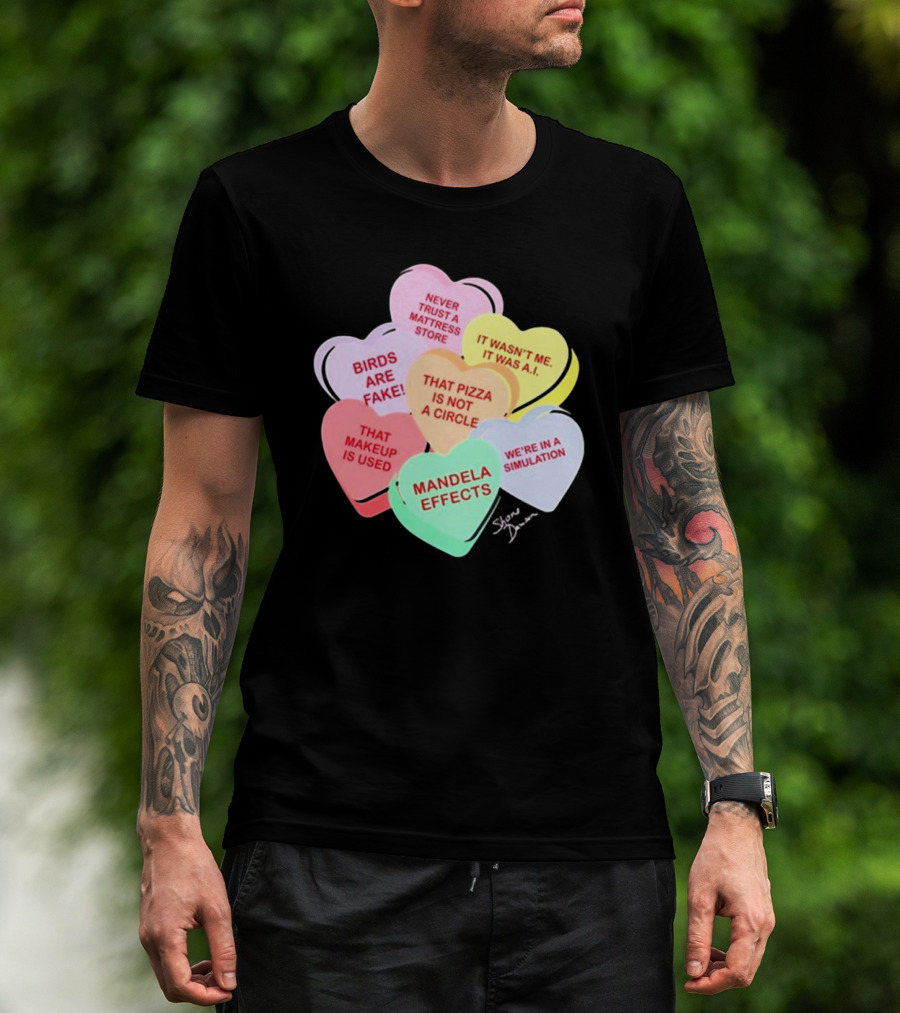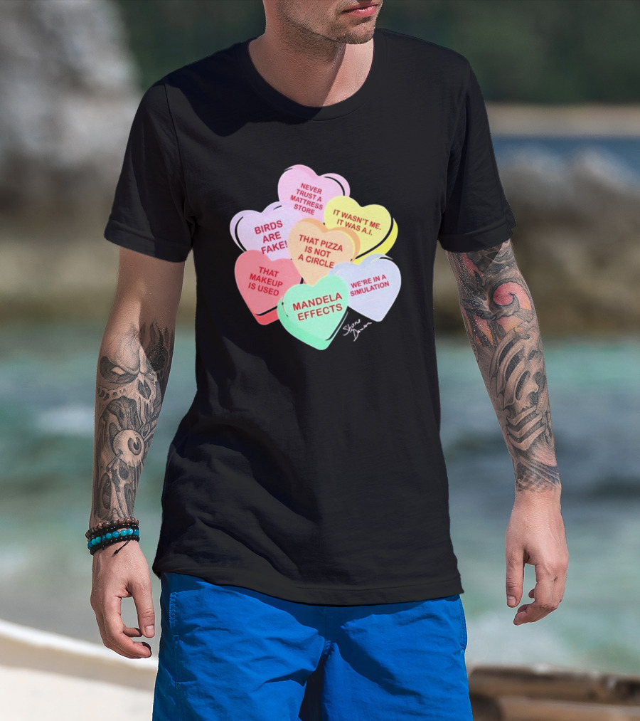 Shane Dawson Conspiracy Hearts Birds Are Fake Mandela Effects Simulation Pizza AI T-Shirt