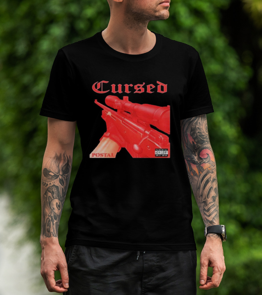 Cursed Postal Rifle Record Text Explicit Content T-Shirt