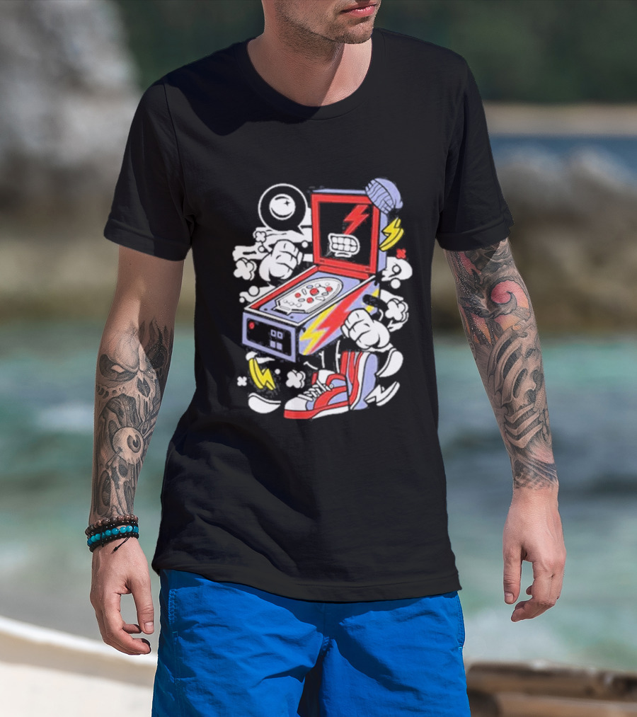 Stern Pinball Lightning Bolt Cartoon Sneakers T-Shirt
