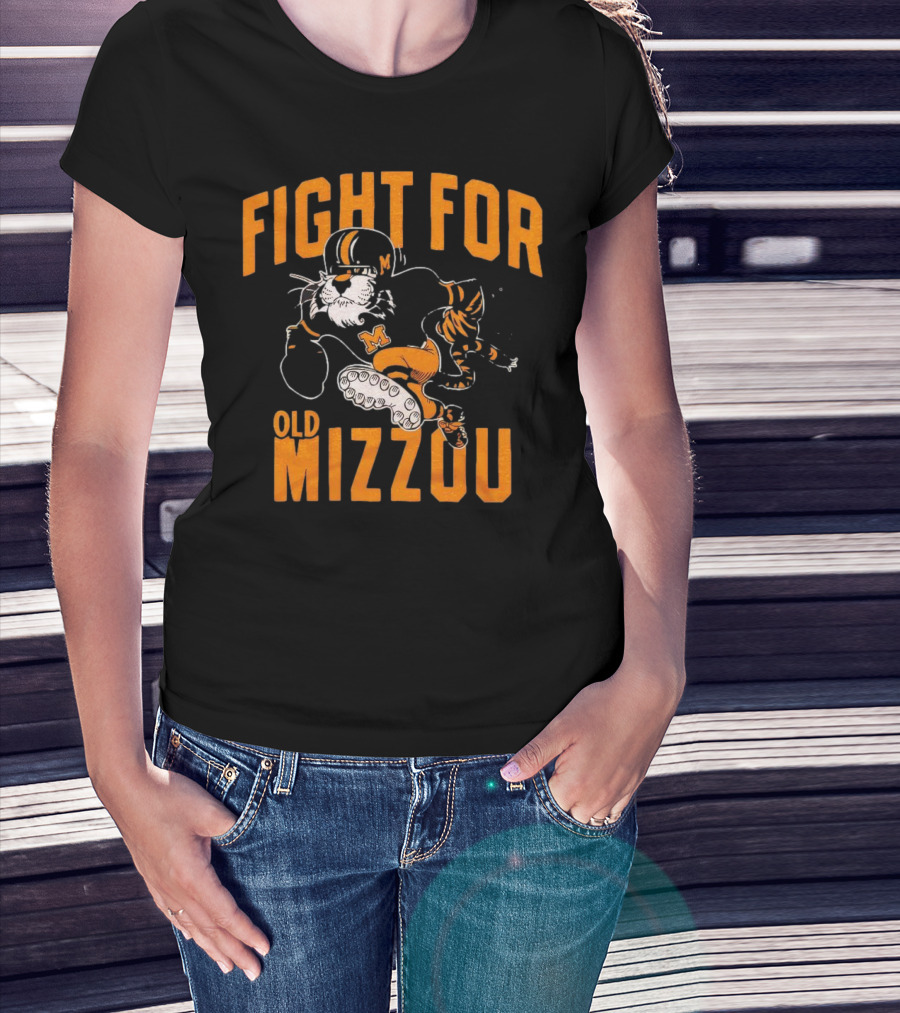 The Fight for Old Mizzou Football Mascot in Action T-shirt is designed for everyday wear and a consistent fit. Fabric is pre-shrunk ring-spun cotton with durable stitching. See the size chart below for exact measurements.