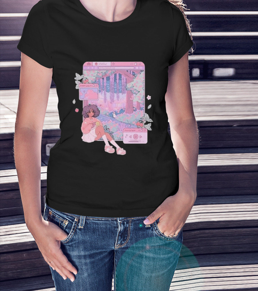 Sheilur Dreamy Strawberry Window Girl In Pink Forest T-Shirt