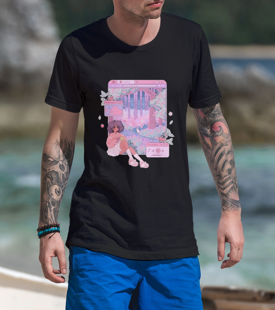 The Sheilur Dreamy Strawberry Window Girl in Pink Forest T-shirt is designed for everyday wear and a consistent fit. Fabric is pre-shrunk ring-spun cotton with durable stitching. See the size chart below for exact measurements.