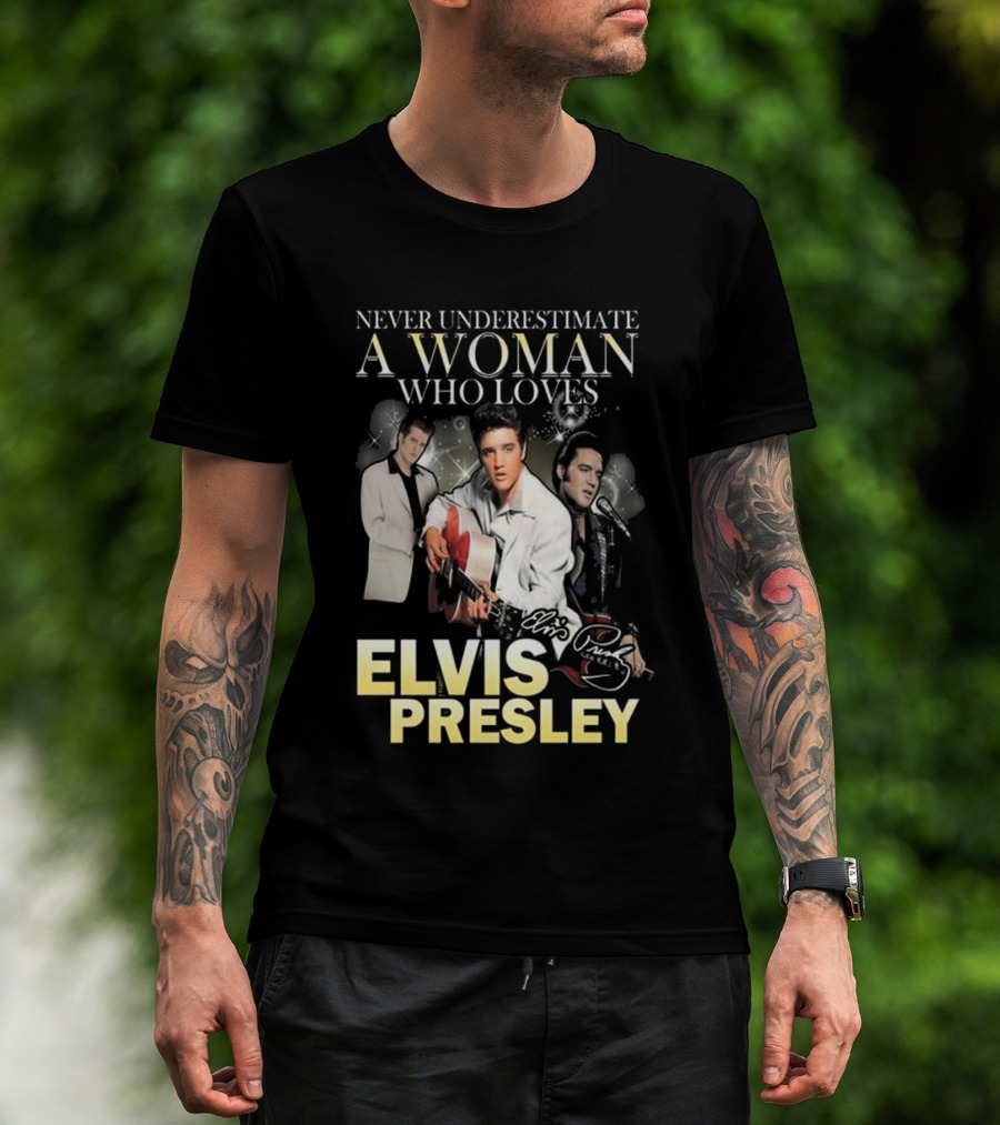 Never Underestimate A Woman Who Loves Elvis Presley Signature T-Shirt