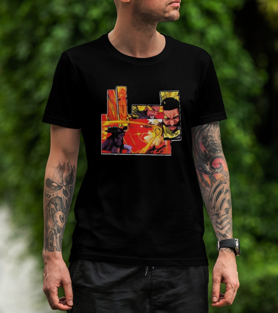Kid Cudi Moon Man Full Comic Style Dynamic Red And Yellow Panels T-Shirt