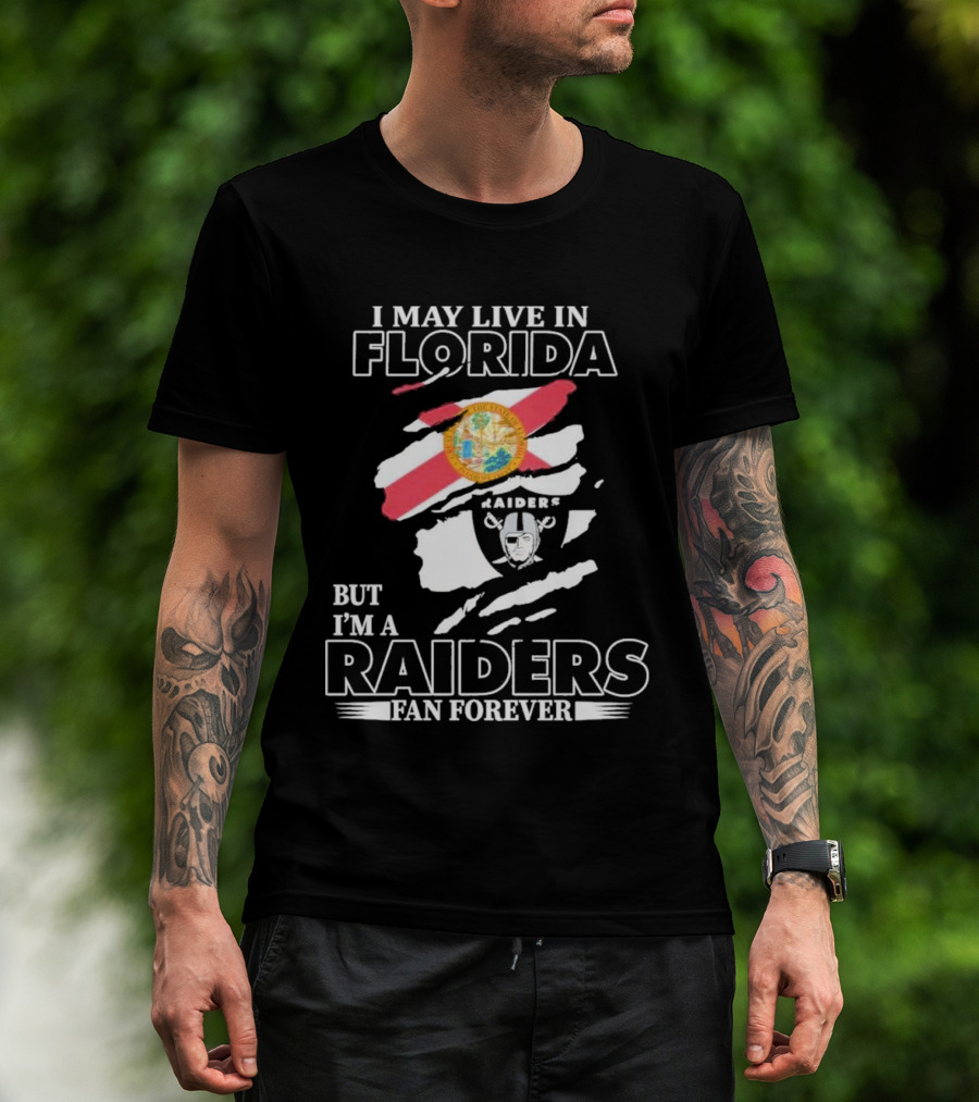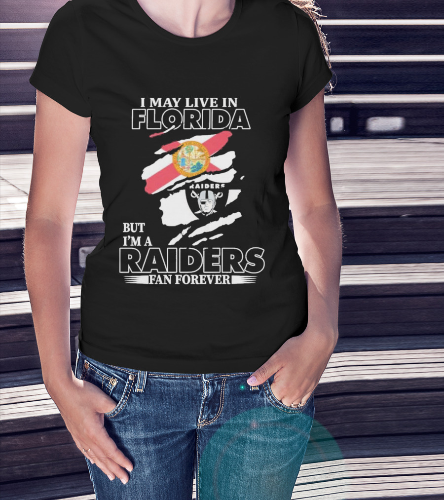 Las Vegas Raiders Fan Forever Living In Florida With Team Logo And State Flag T-Shirt