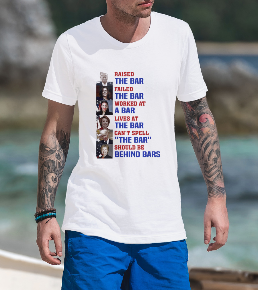Raised The Bar Failed The Bar Worked At A Bar Lives At The Bar Can't Spell The Bar Should Be Behind Bars T-Shirt