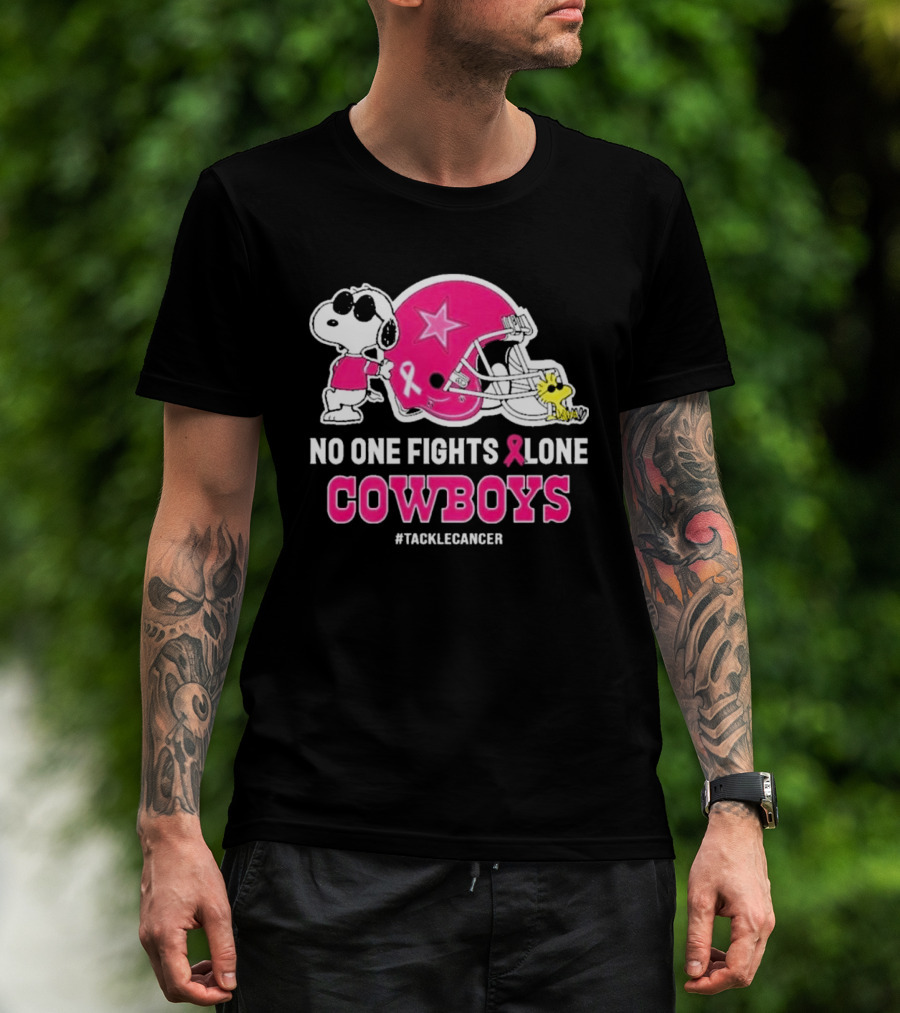 Snoopy And Woodstock No One Fights Alone Cowboys #TackleCancer T-Shirt