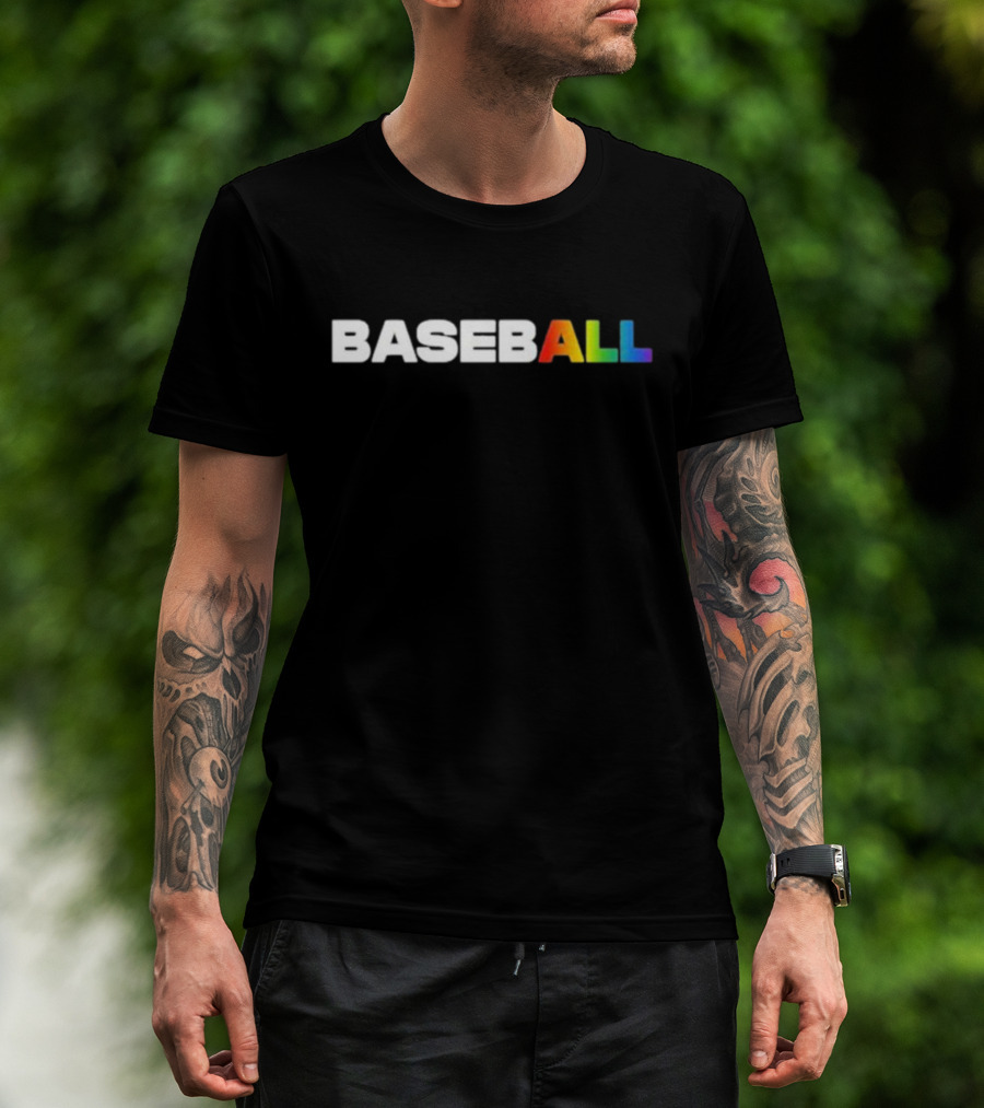 Pitcherlist Baseball Pride ALL Rainbow Letters T-Shirt