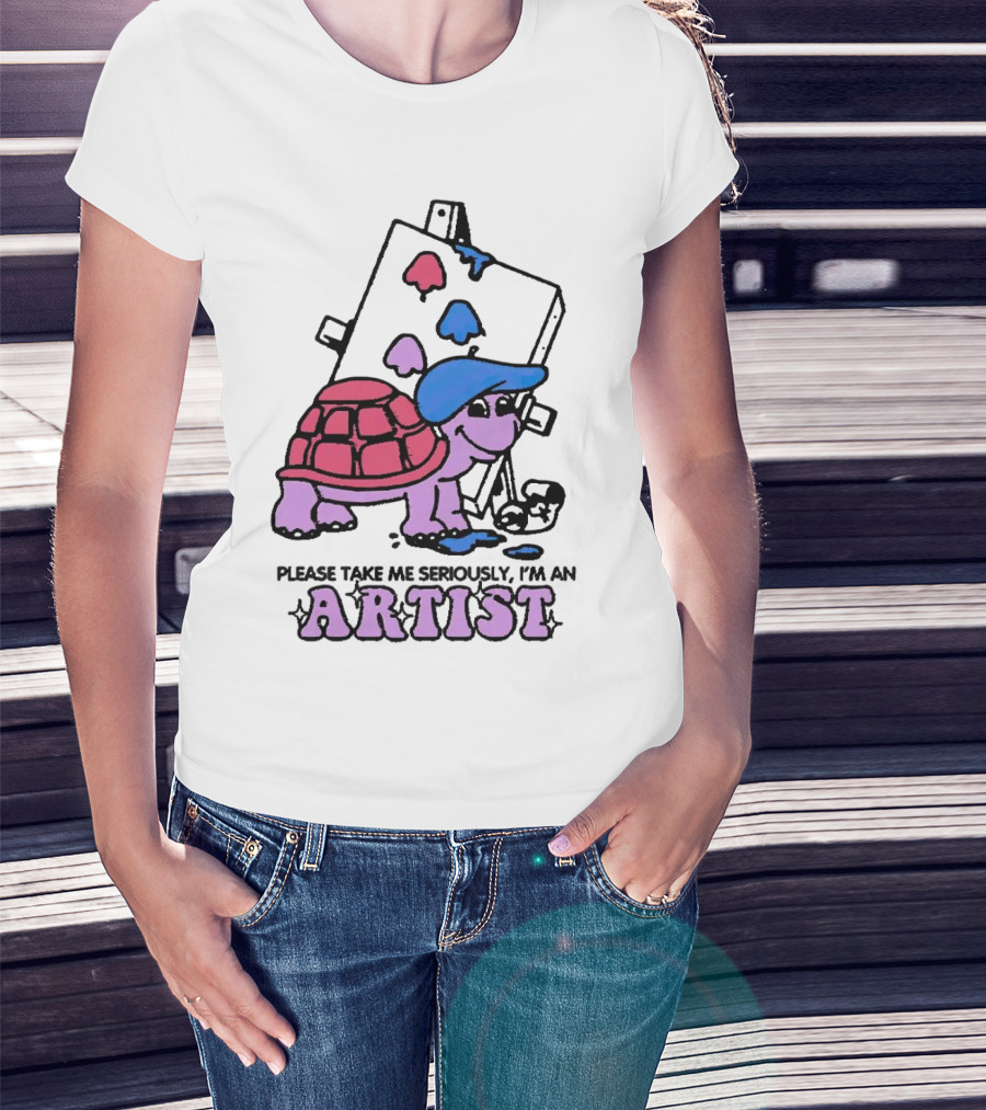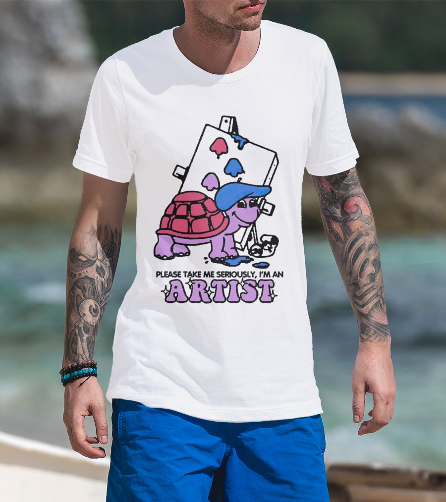 Please Take Me Seriously I'm An Artist Turtle With Paint Palette And Easel T-Shirt