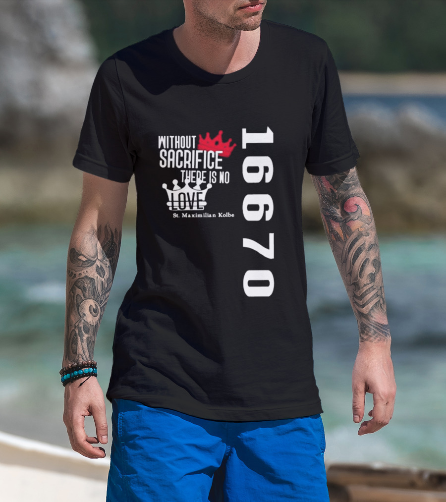 Without Sacrifice There Is No Love St. Maximilian Kolbe 16670 Red And White Crowns T-Shirt
