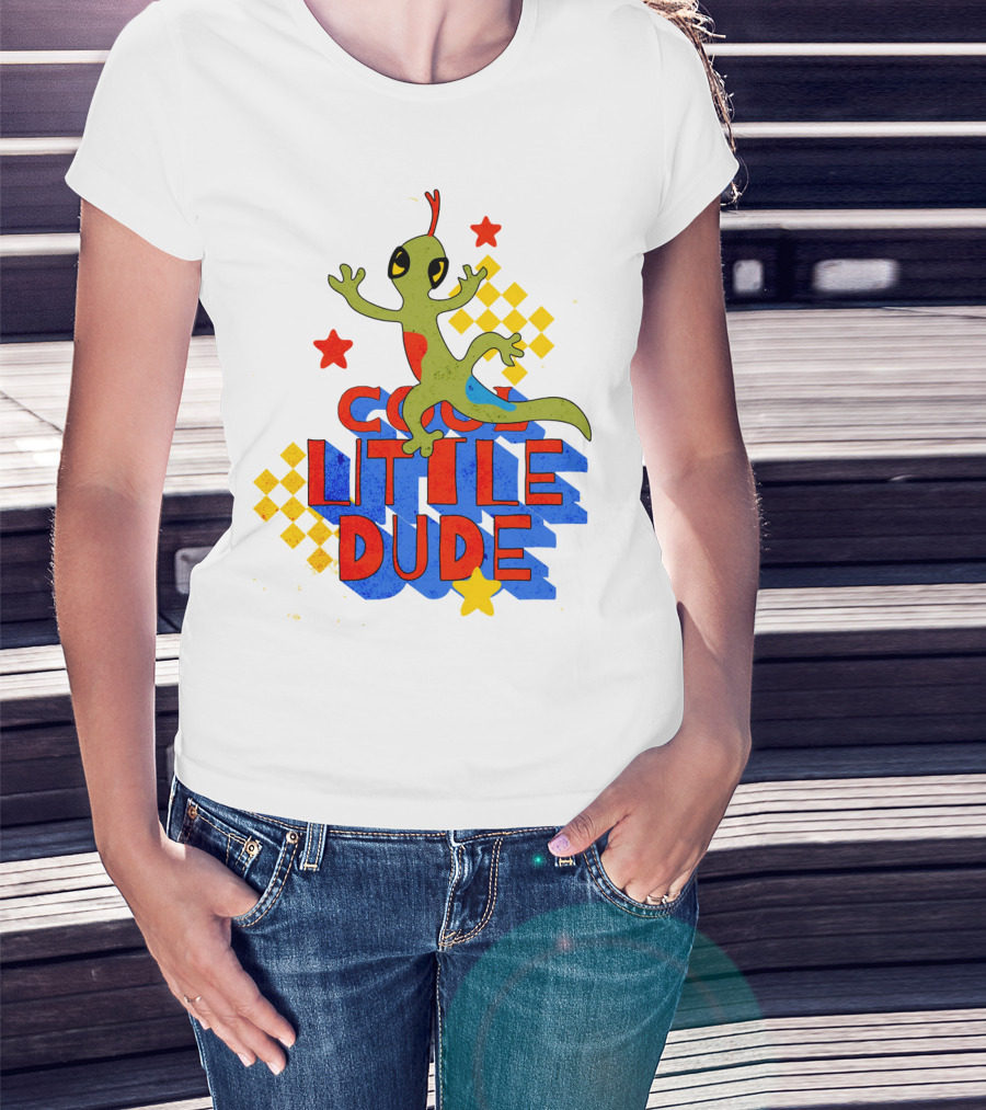 Cool Little Dude Lizard With Stars And Checkerboard T-Shirt