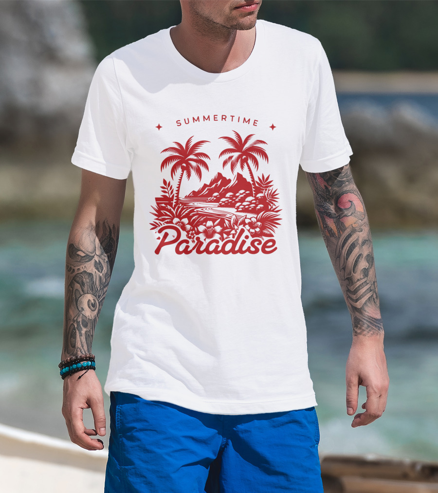 The Summertime Paradise Palm Trees and Mountains Landscape T-shirt is designed for everyday wear and a consistent fit. Fabric is pre-shrunk ring-spun cotton with durable stitching. See the size chart below for exact measurements.