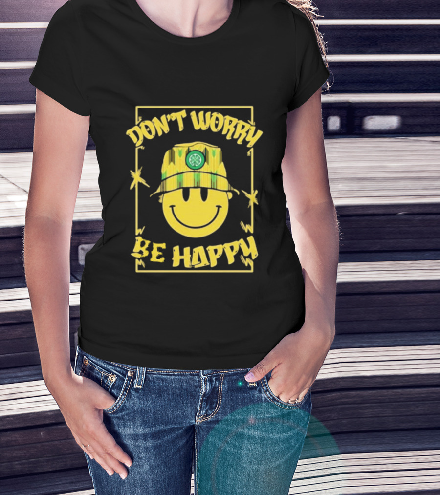Don't Worry Be Happy Smiley Face With Celtic Jay Bucket Hat T-Shirt