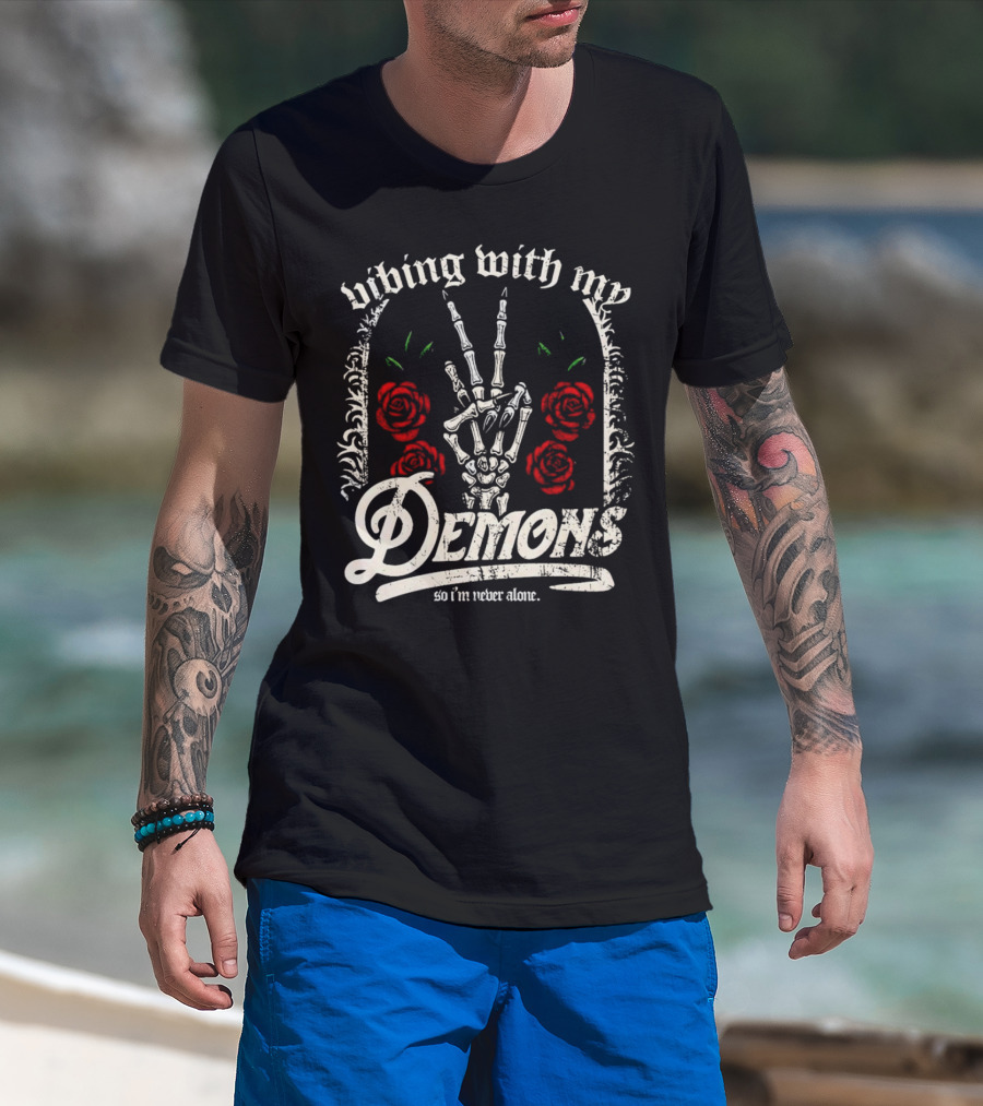 Vibing With My Demons So I'm Never Alone Roses Skeleton Hand Gothico T-Shirt