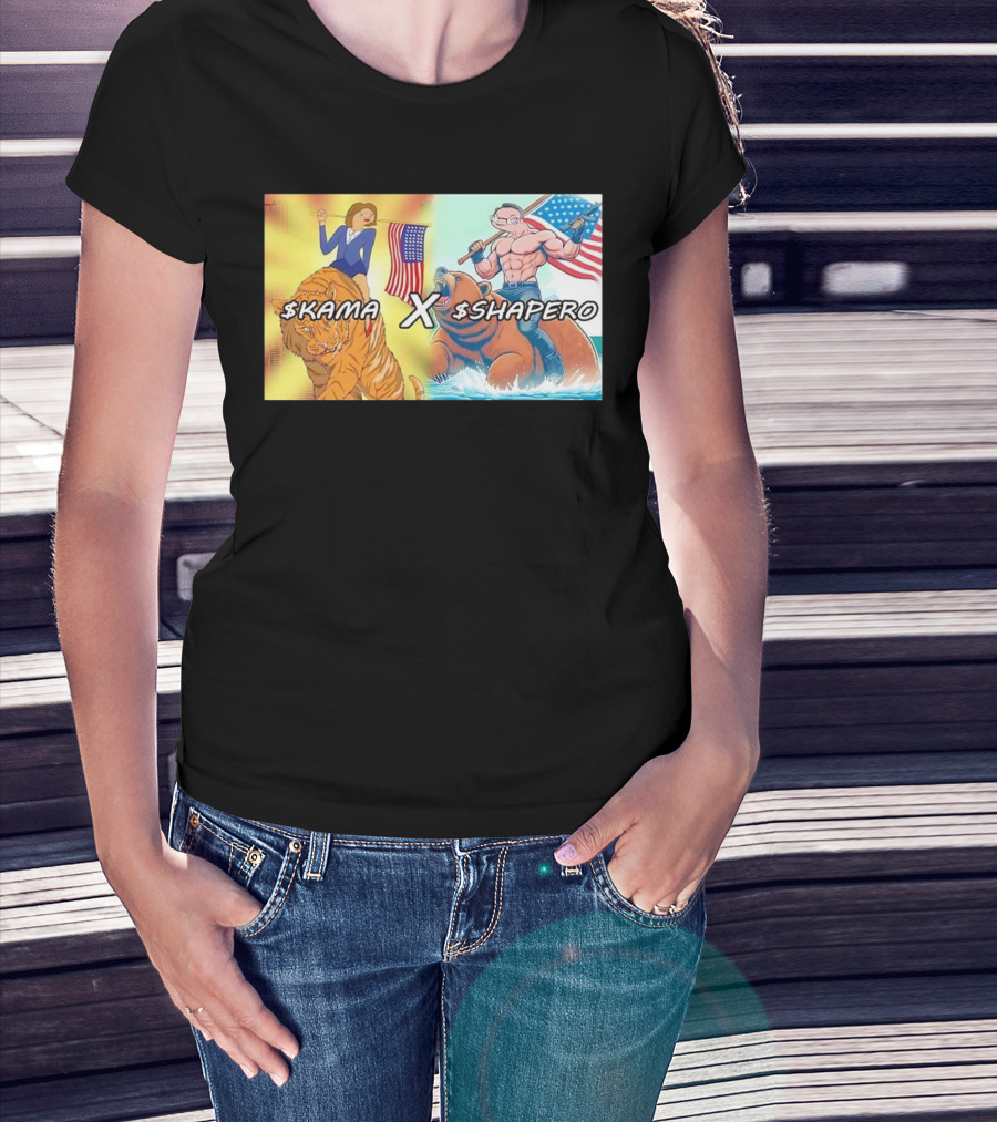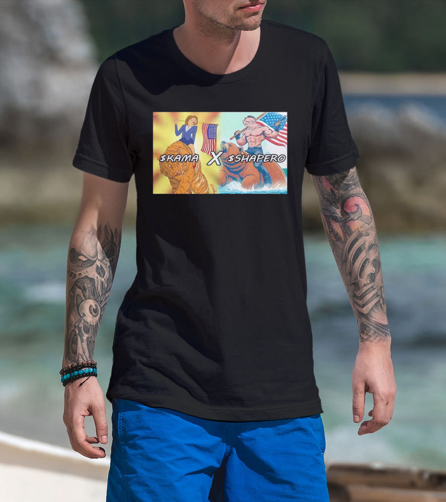Kama X Shapero USA Cartoon Tiger Bear Flag Showdown T-Shirt