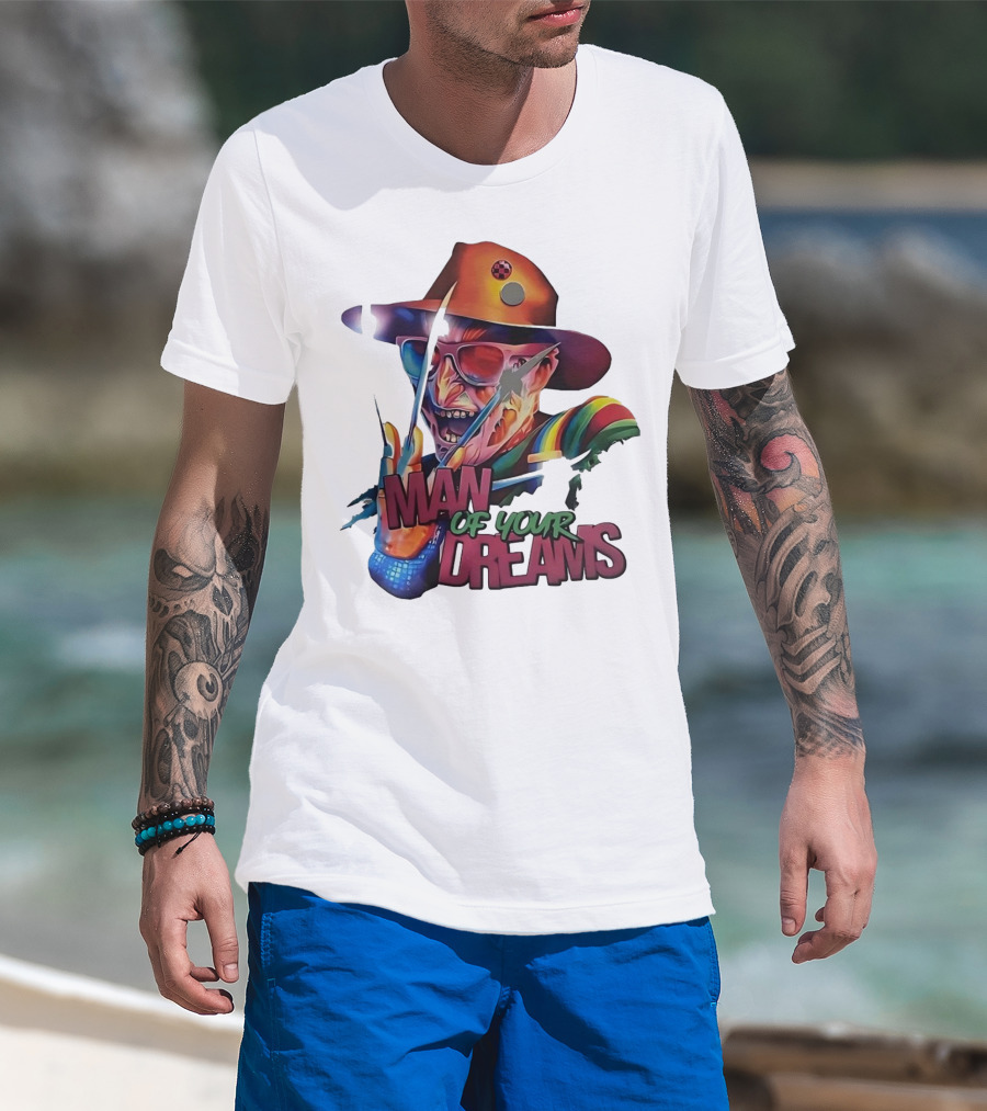 The Freddy Krueger Rainbow Hat Sunglasses Claw Man of Your Dreams T-shirt is designed for everyday wear and a consistent fit. Fabric is pre-shrunk ring-spun cotton with durable stitching. See the size chart below for exact measurements.