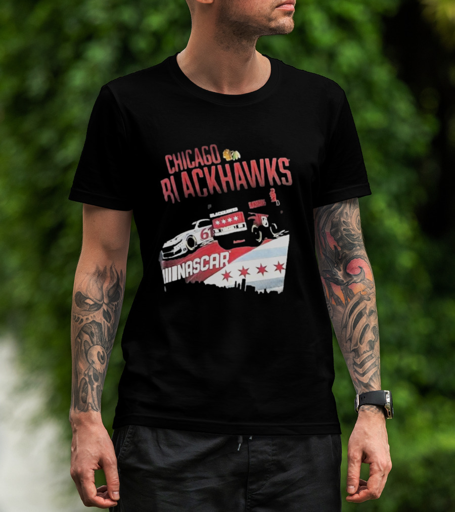 Chicago Blackhawks NASCAR Racing Car With City Skyline And Number 61 T-Shirt